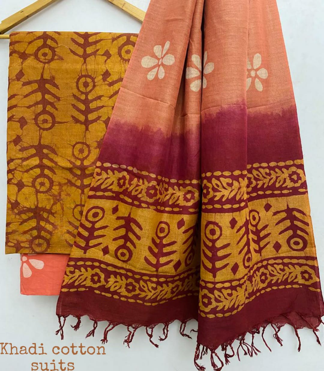 Exclusive new hand block printed khadi cotton dress materials with khadi cotton duptta