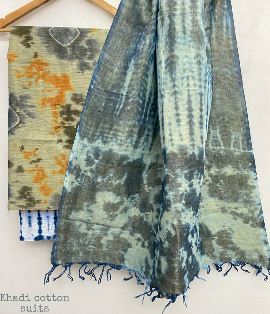 Exclusive new hand block printed khadi cotton dress materials with khadi cotton duptta