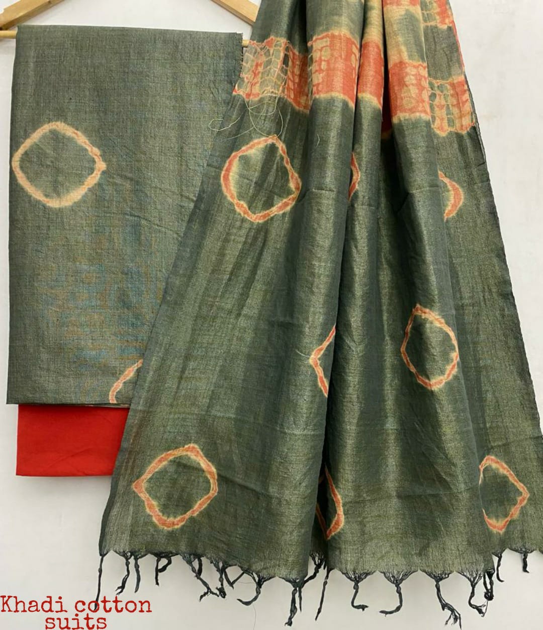 Exclusive new hand block printed khadi cotton dress materials with khadi cotton duptta