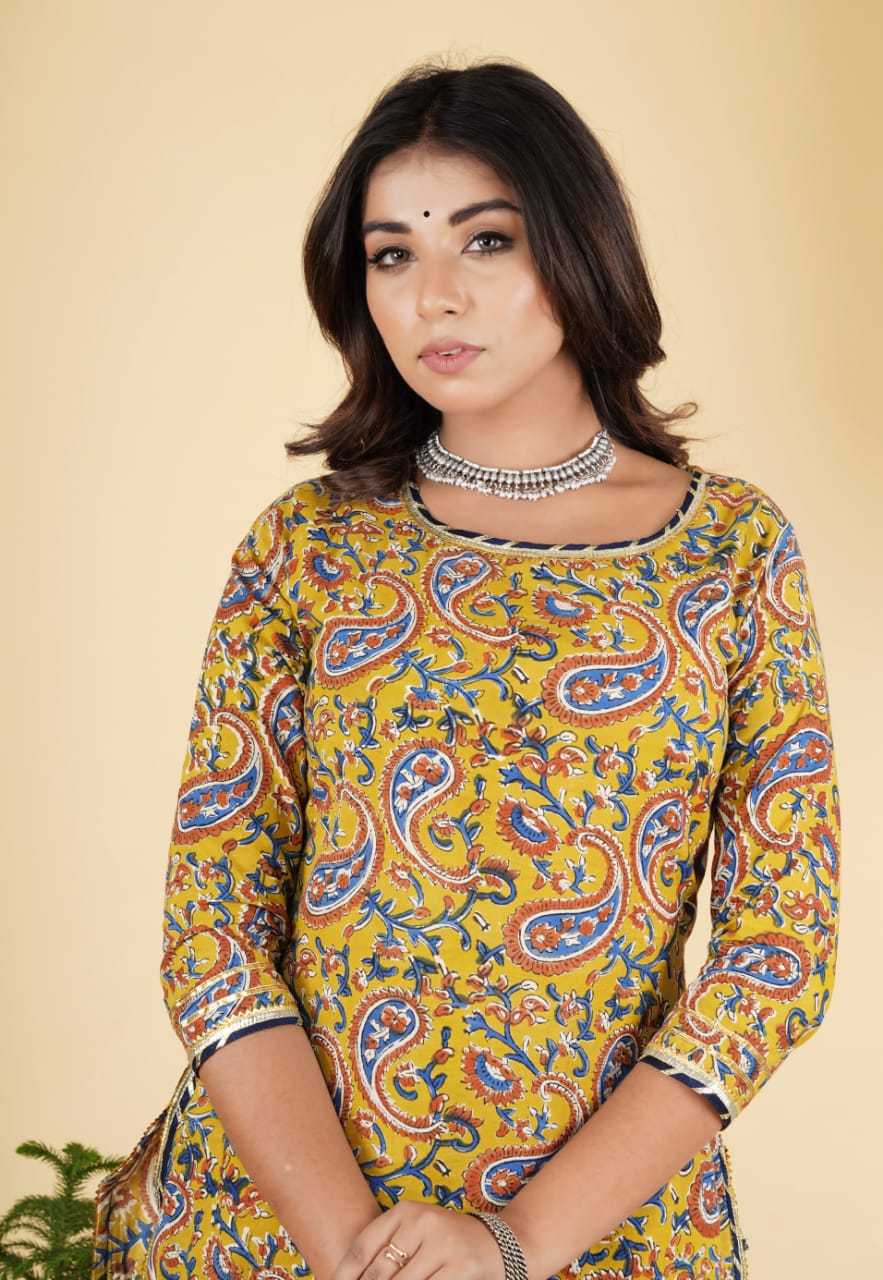 • Cotton Kurti with Cotton Plazo and Mulmul Dupatta