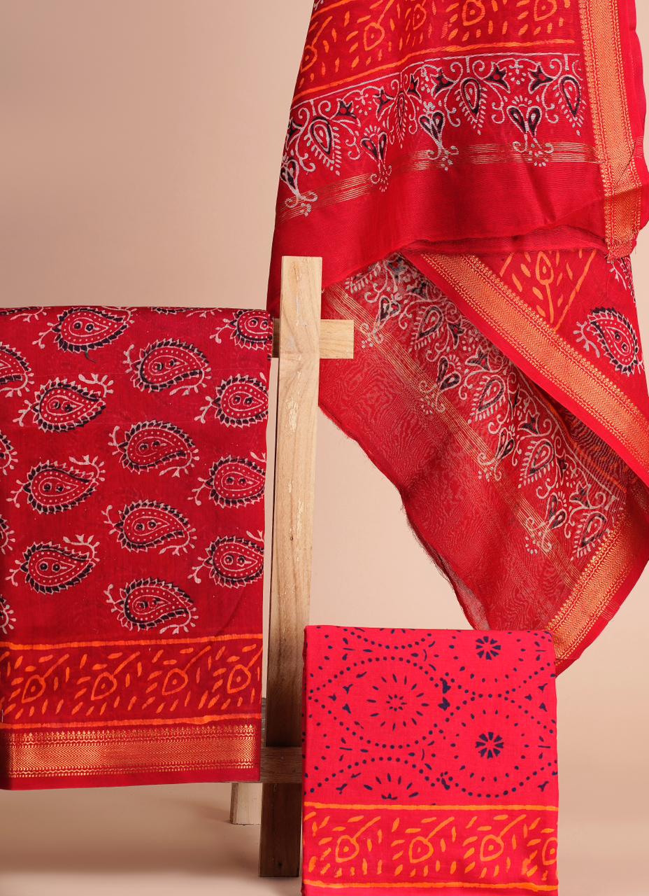 • Ajrakh Chanderi Dress Material