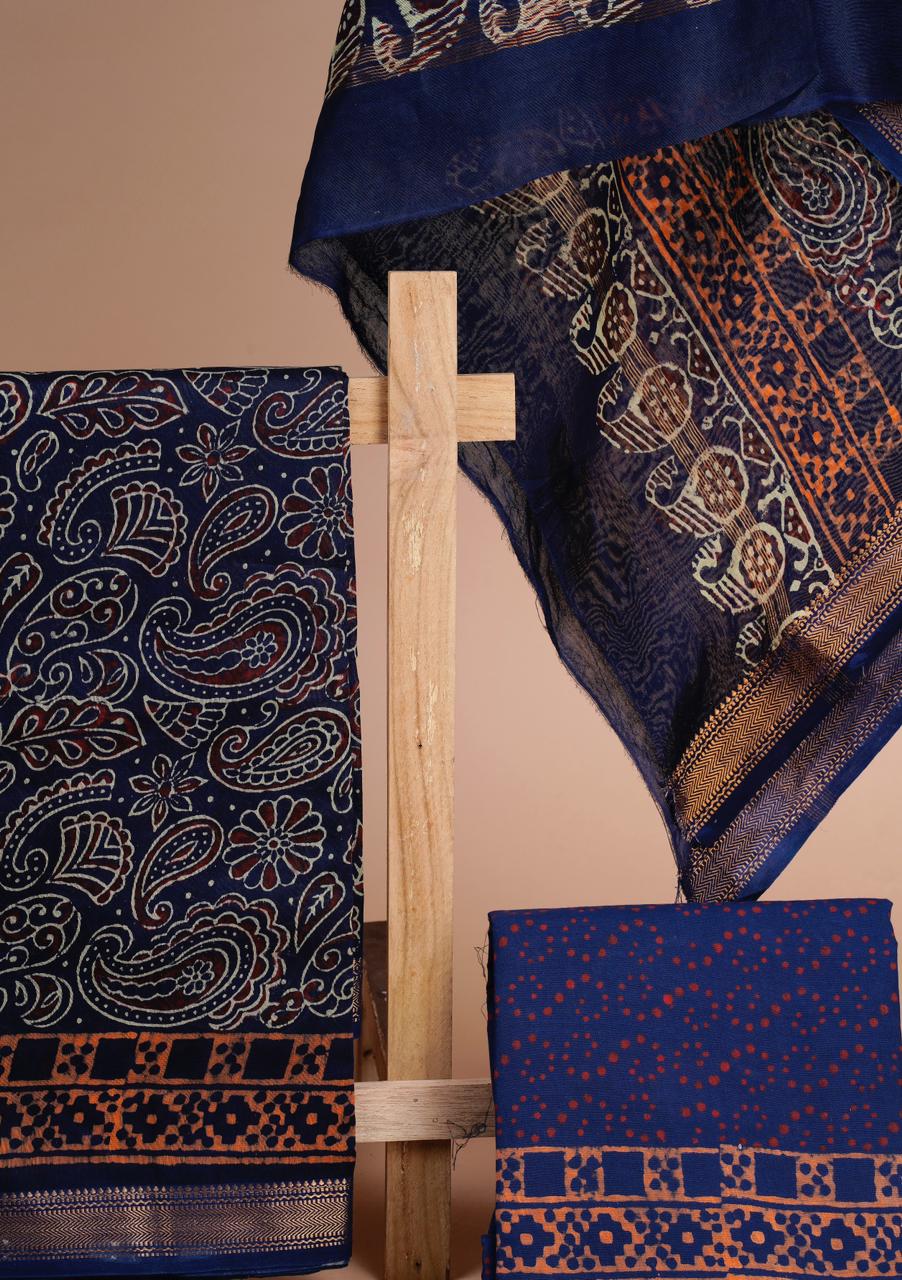 • Ajrakh Chanderi Dress Material