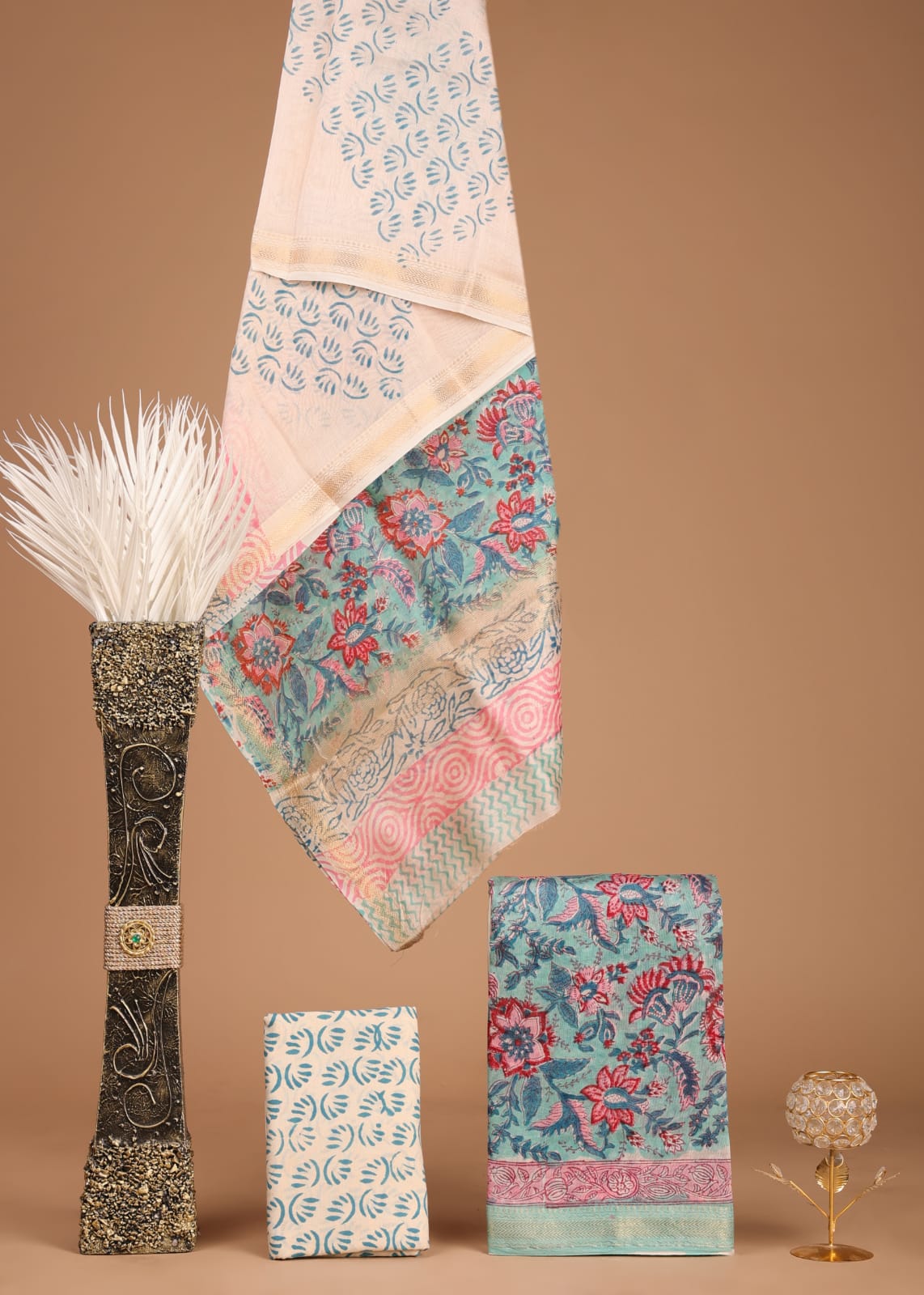 Be the first to review “Hand block printed Maheshwari Silk zari border Suits” Cancel reply