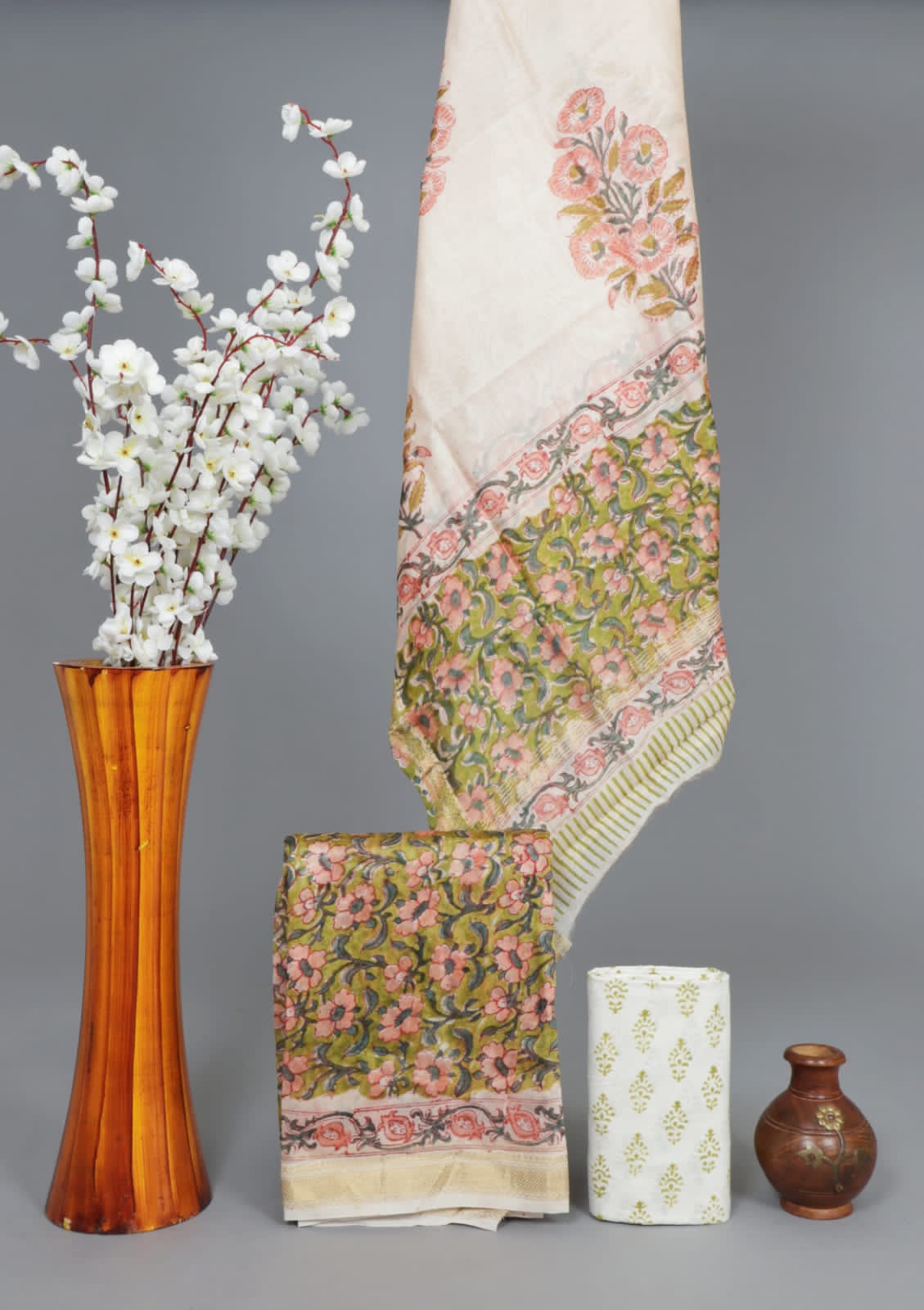 Hand block printed Maheshwari Silk zari border Suits ₹ 4300.00 Original price was: ₹ 4300.00.₹ 3250.00Current price is: ₹ 3250.00.