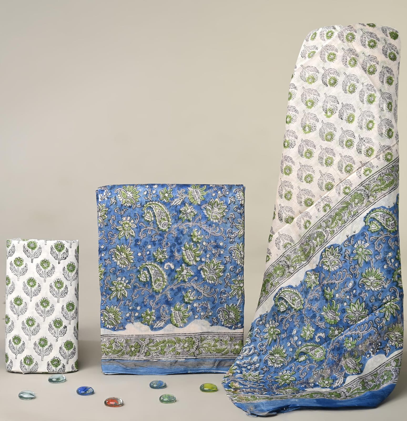 Jackyll Special handblock printed pure cotton suits with kota doriya dupatta.