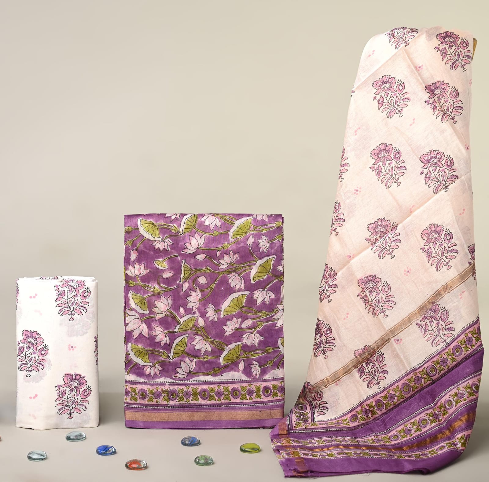 Hand Block Printed Pure Chanderi Silk Suits with Chanderi Silk Dupatta