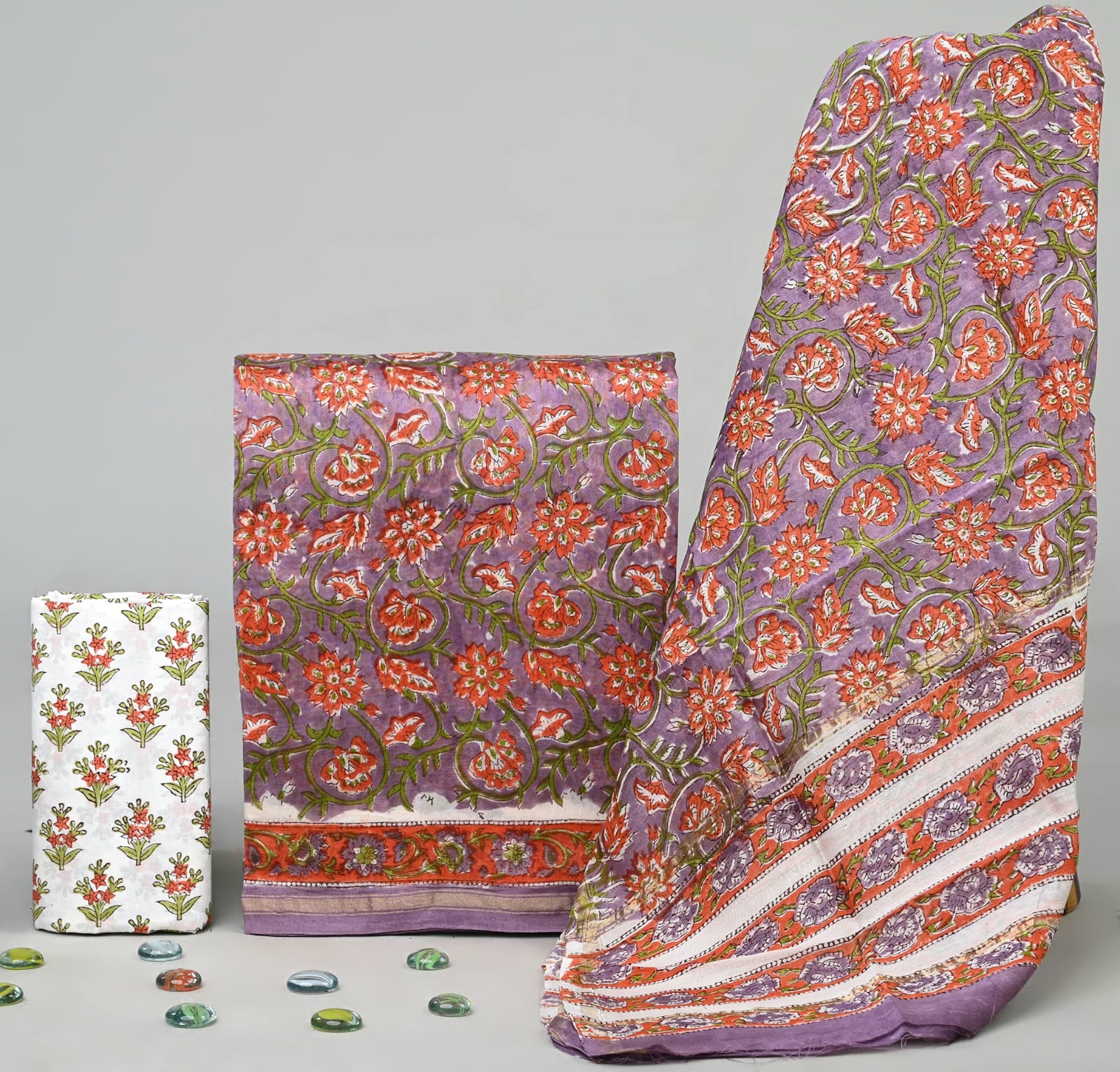 Jackyll Special handblock printed pure cotton suits with kota doriya dupatta.