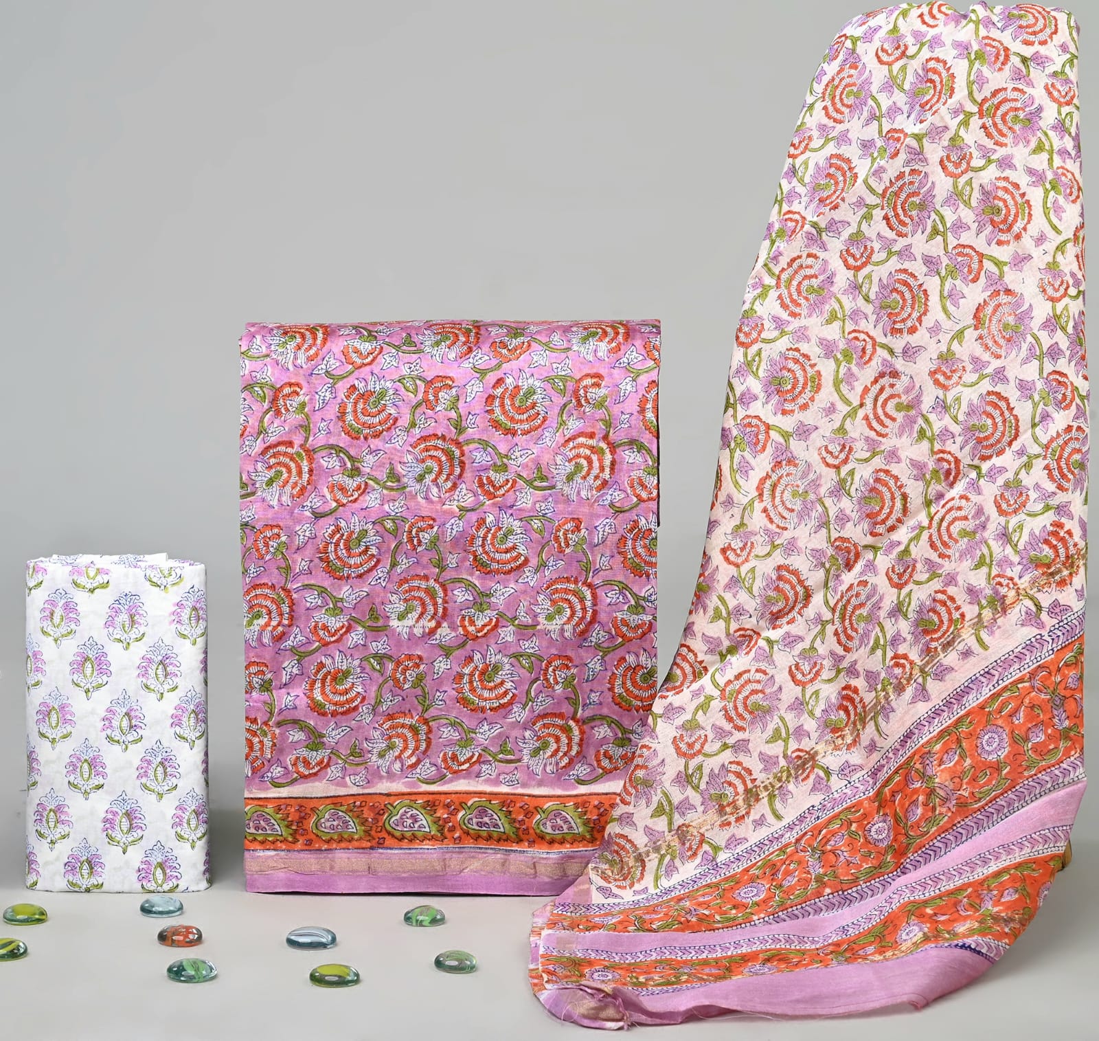 Hand Block Printed Pure Chanderi Silk Suits with Chanderi Silk Dupatta