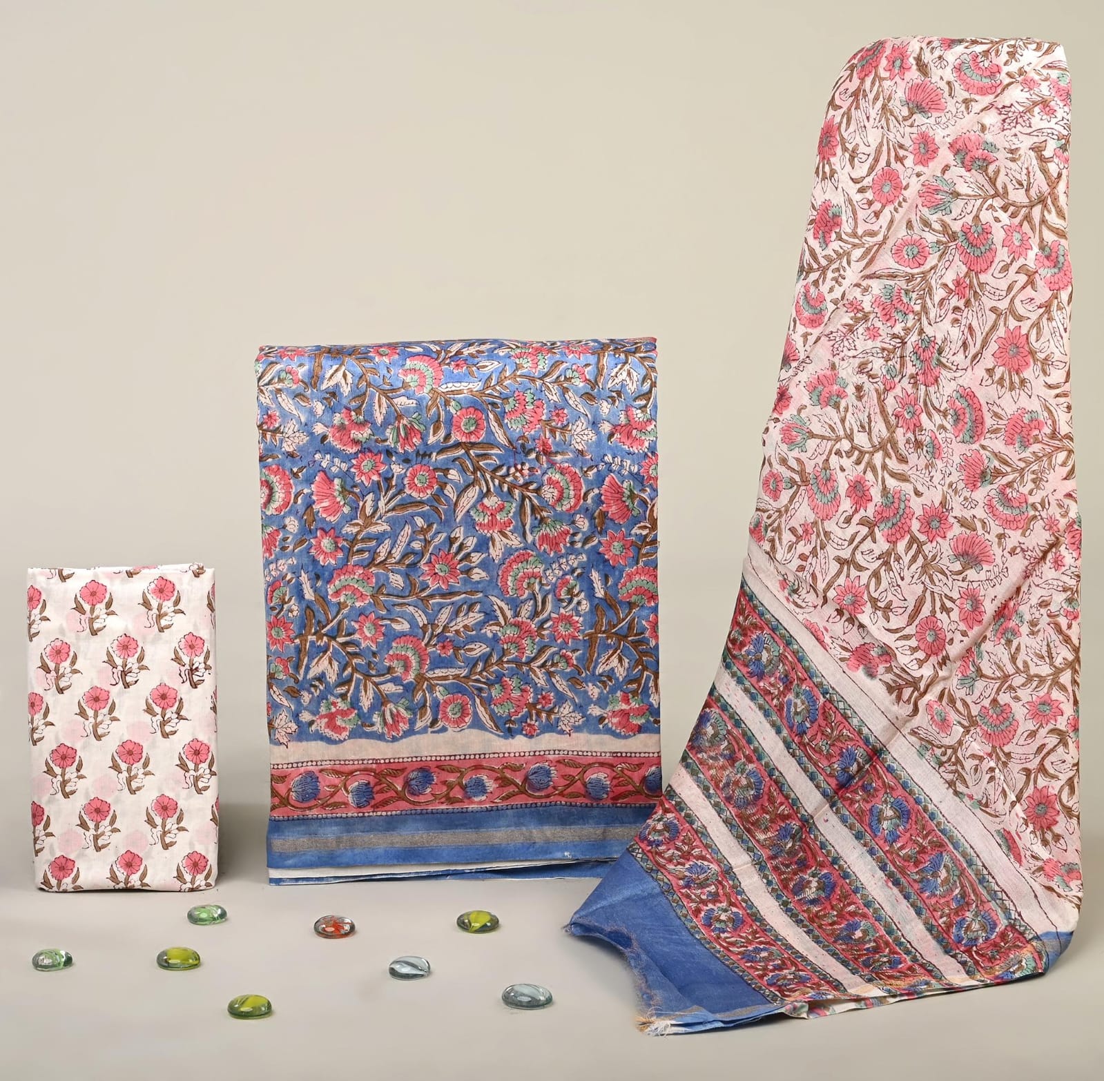 Hand Block Printed Pure Chanderi Silk Suits with Chanderi Silk Dupatta