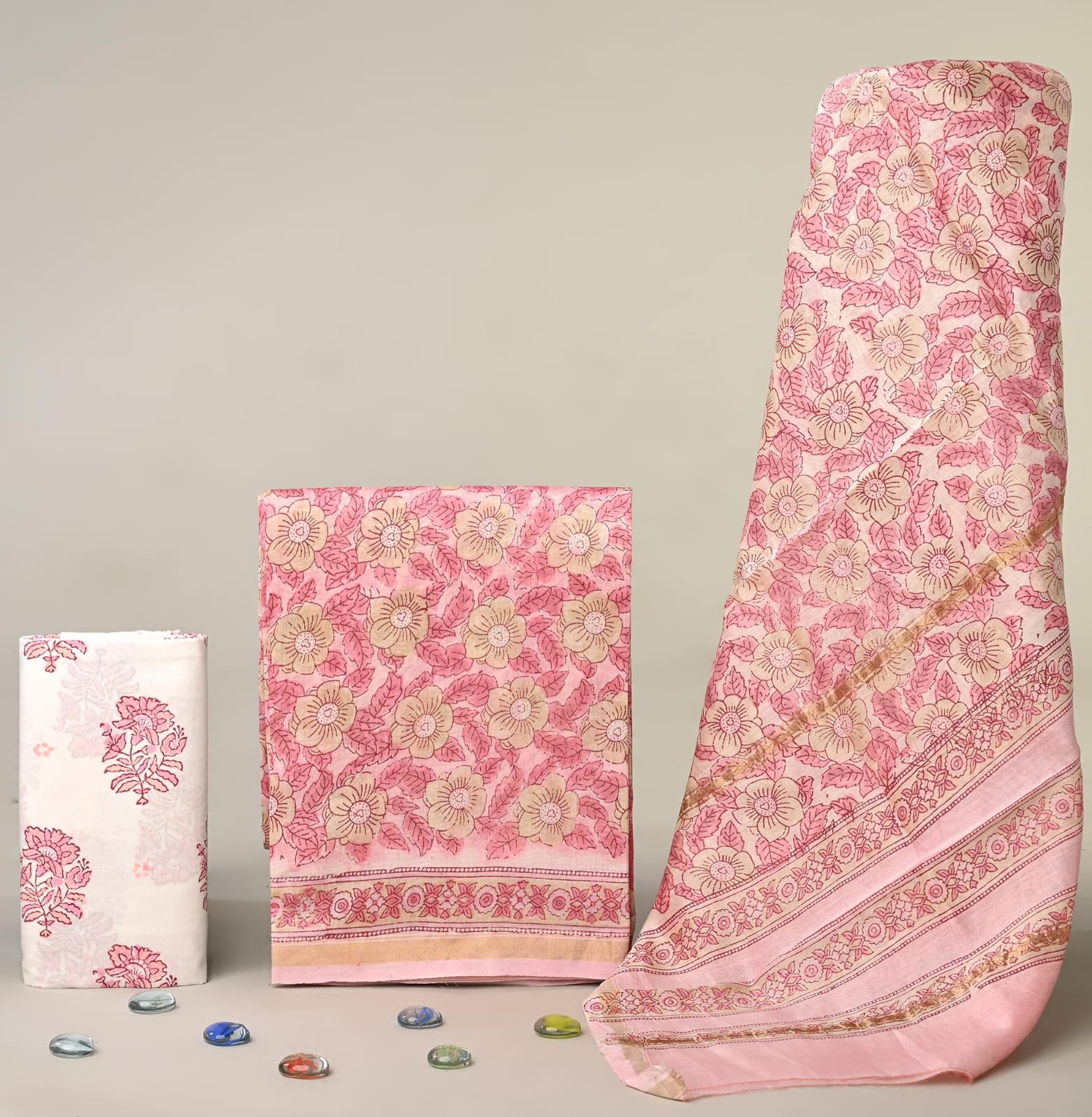 Hand Block Printed Pure Chanderi Silk Suits with Chanderi Silk Dupatta