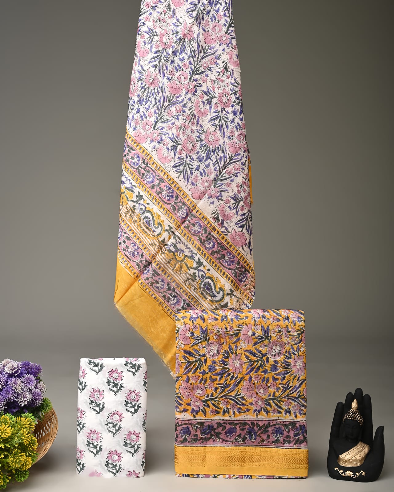 • Pure cotton suits with chiffon dupatta