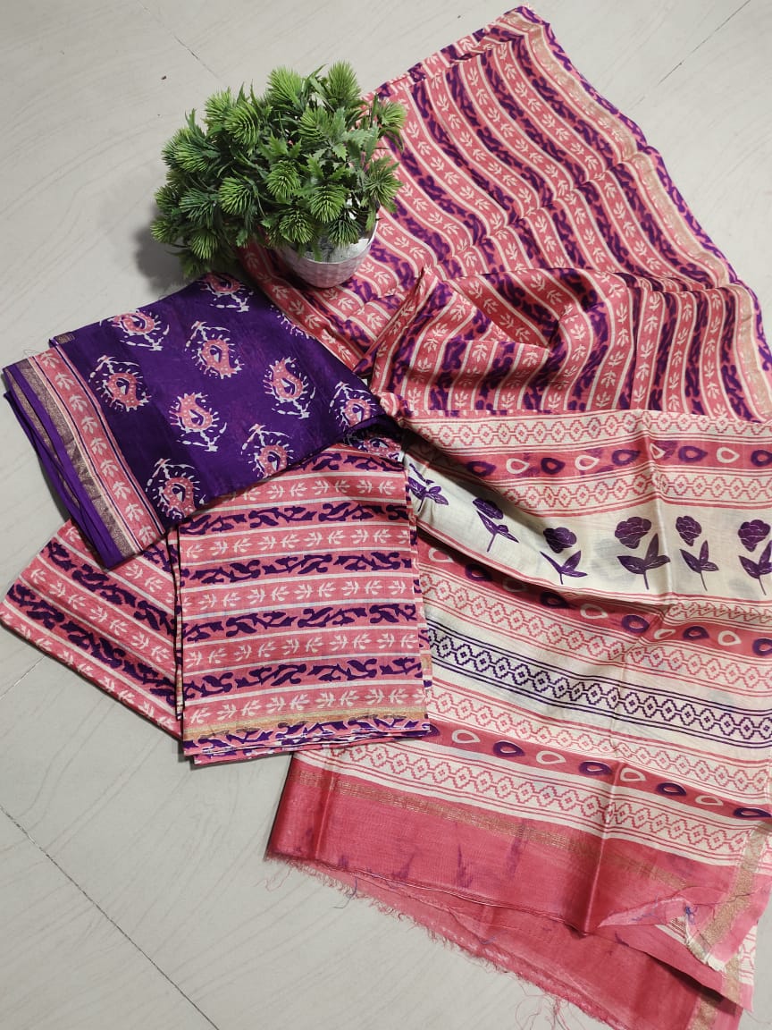 Pure Maheshwari Hand Block Dress Material