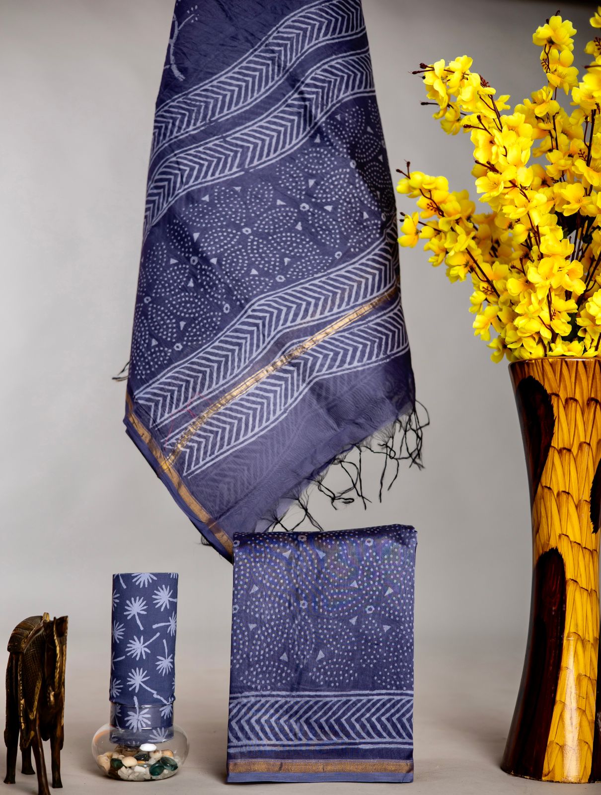 Hand Block Printed Chanderi Silk suit Chanderi Top -2.5 mtr Cotton Bottom 2.5 Mrs Chanderi Dupatta – 2.5 mtr