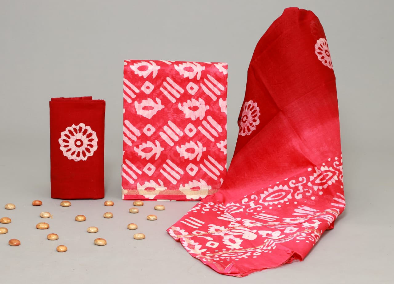 Hand Block Printed Chanderi Silk suit Chanderi Top -2.5 mtr Cotton Bottom 2.5 Mrs Chanderi Dupatta – 2.5 mtr