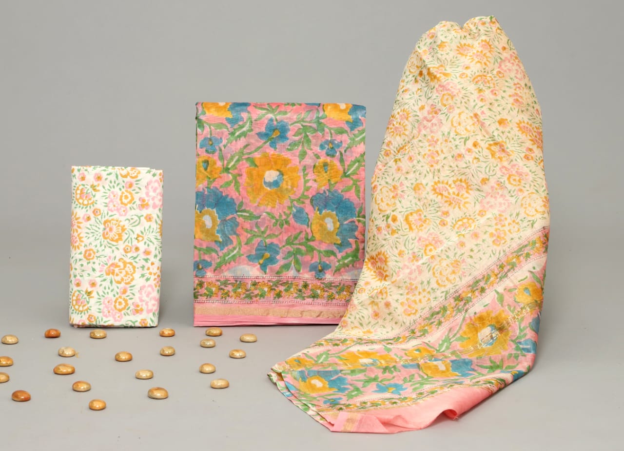 Jackyll Special handblock printed pure cotton suits with kota doriya dupatta.