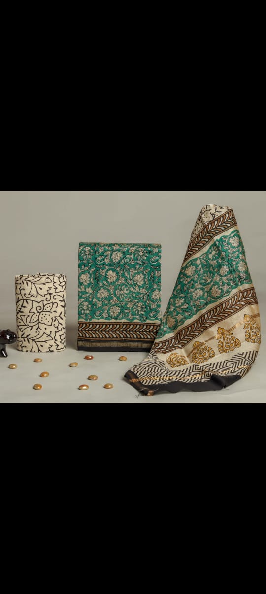 Hand Block Printed Chanderi Silk suit Chanderi Top -2.5 mtr Cotton Bottom 2.5 Mrs Chanderi Dupatta – 2.5 mtr