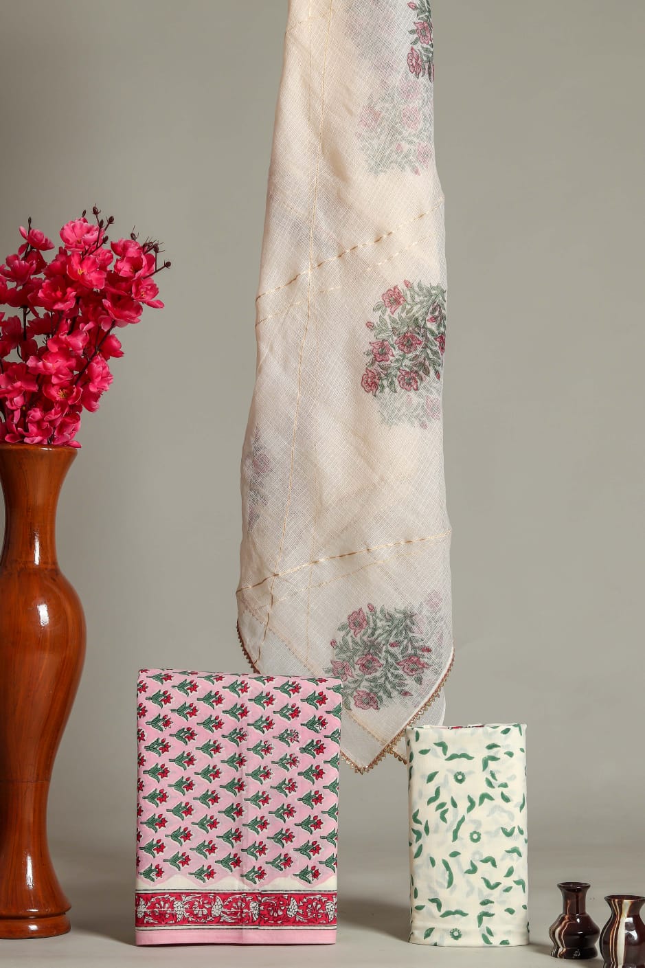 Kota Doria Dupatta Suit Materials in fine Hand Block Print