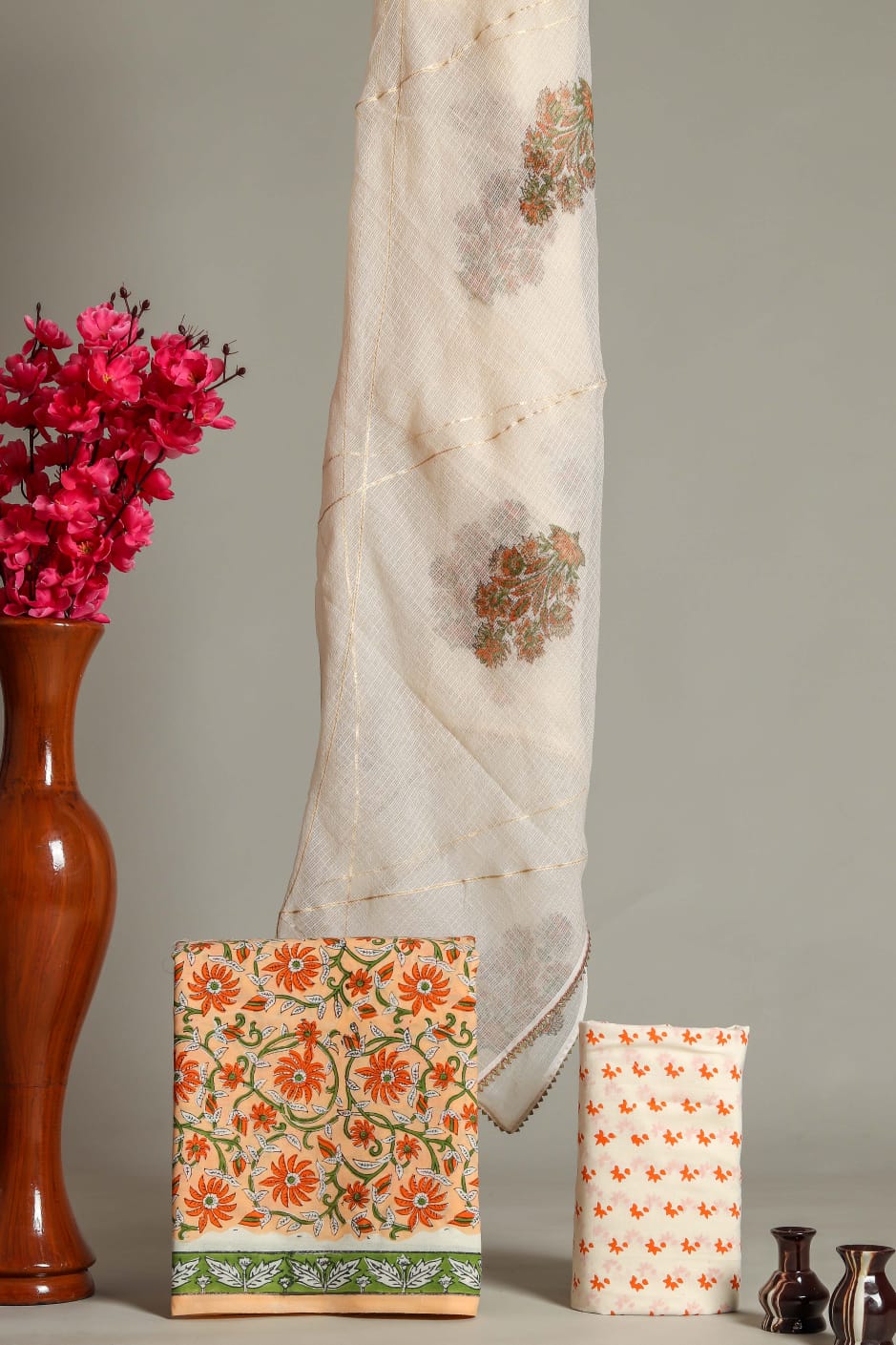 Kota Doria Dupatta Suit Materials in fine Hand Block Print