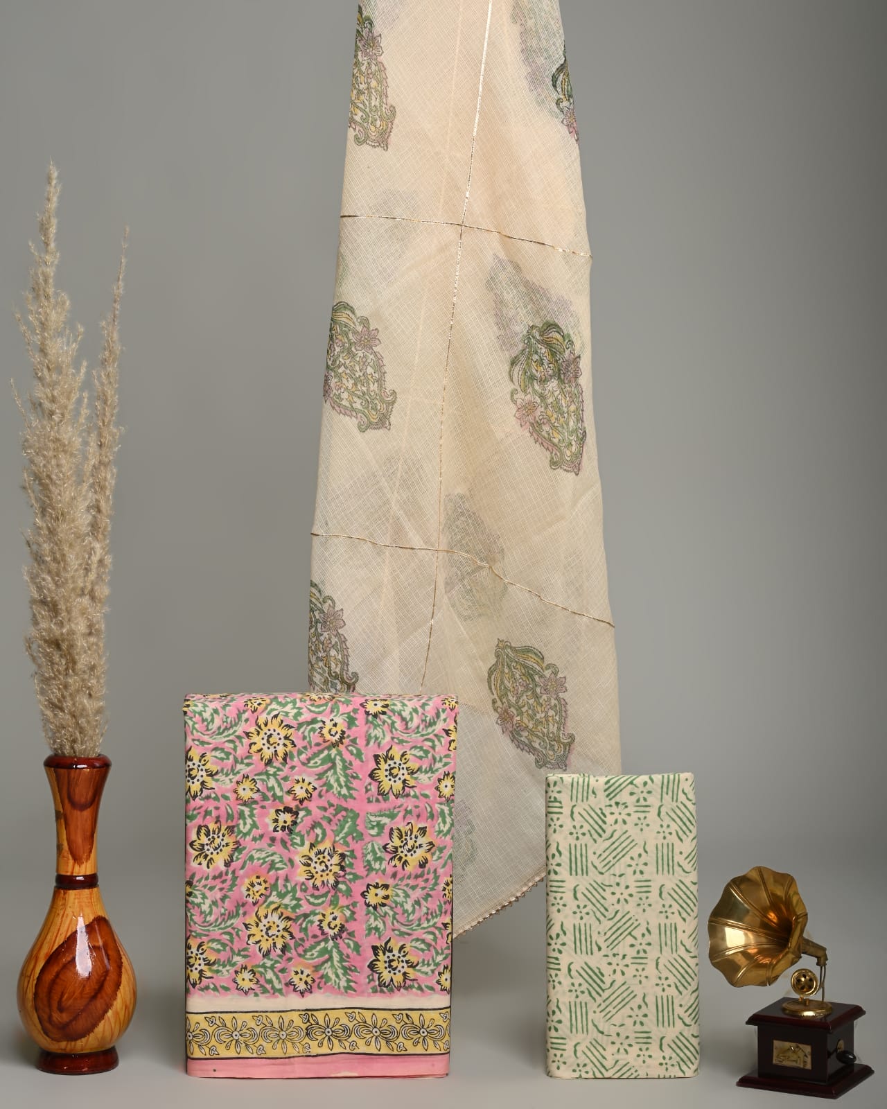 Kota Doria Dupatta Suit Materials in fine Hand Block Print