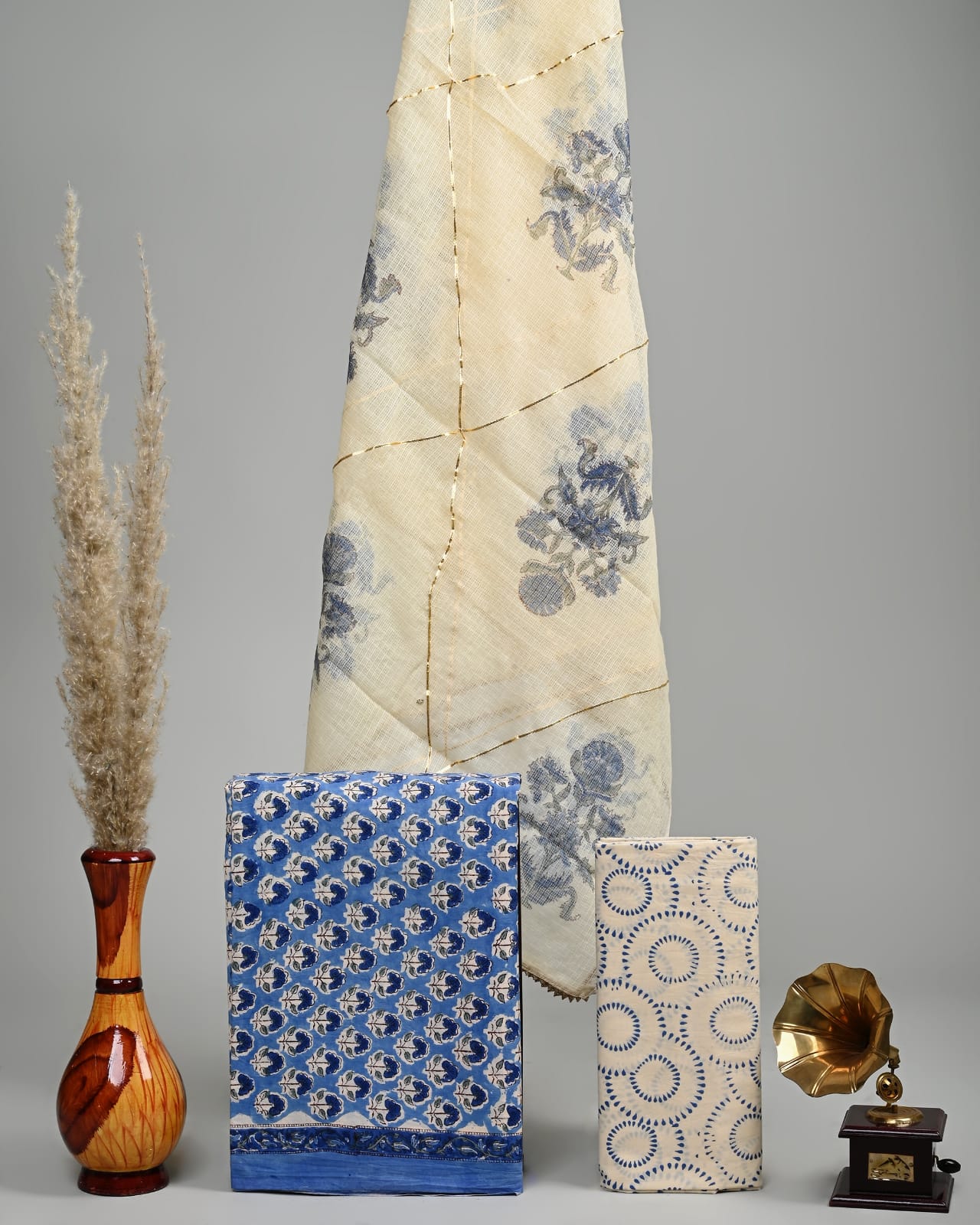 Kota Doria Dupatta Suit Materials in fine Hand Block Print