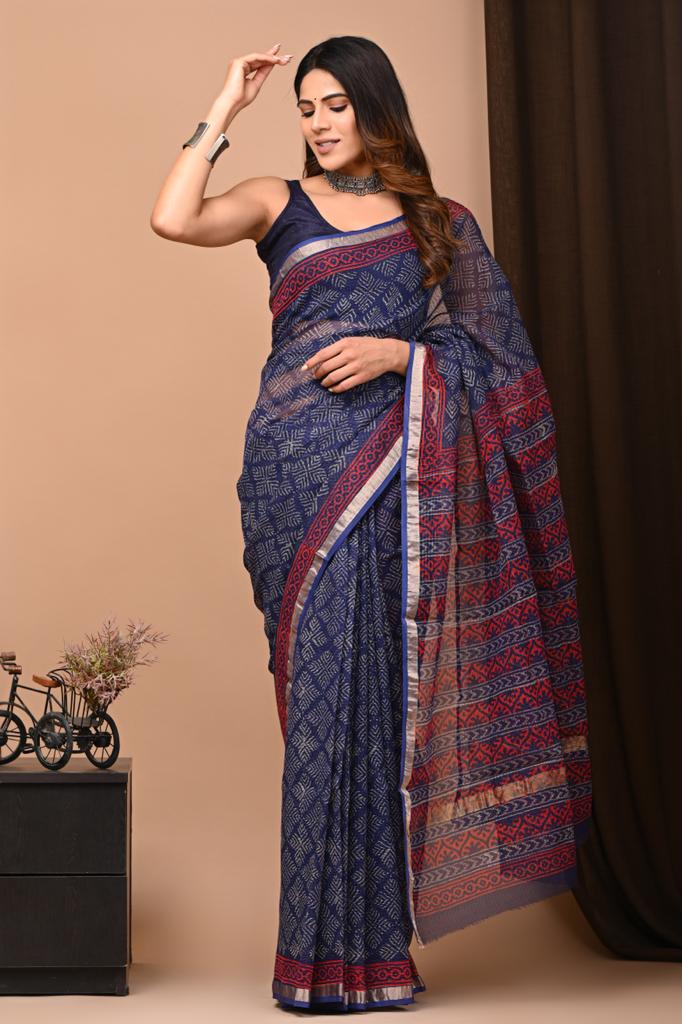 A Blend of beautiful pure kota doria hand made sarees with imprints of bagru ,dabu and block prints