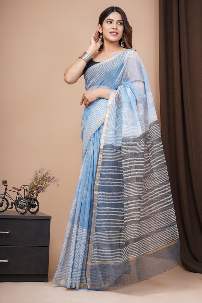 A Blend of beautiful pure kota doria hand made sarees with imprints of bagru ,dabu and block prints