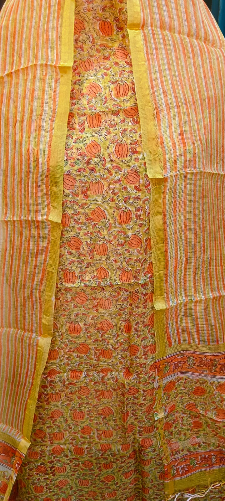 Kota Silk Hand Block print dress material