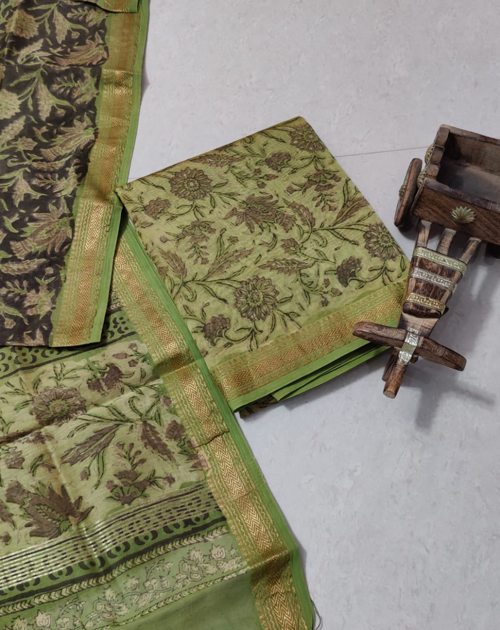 • Stiched hand block suits with kota dupattaStiched hand block suits with kota dupatta