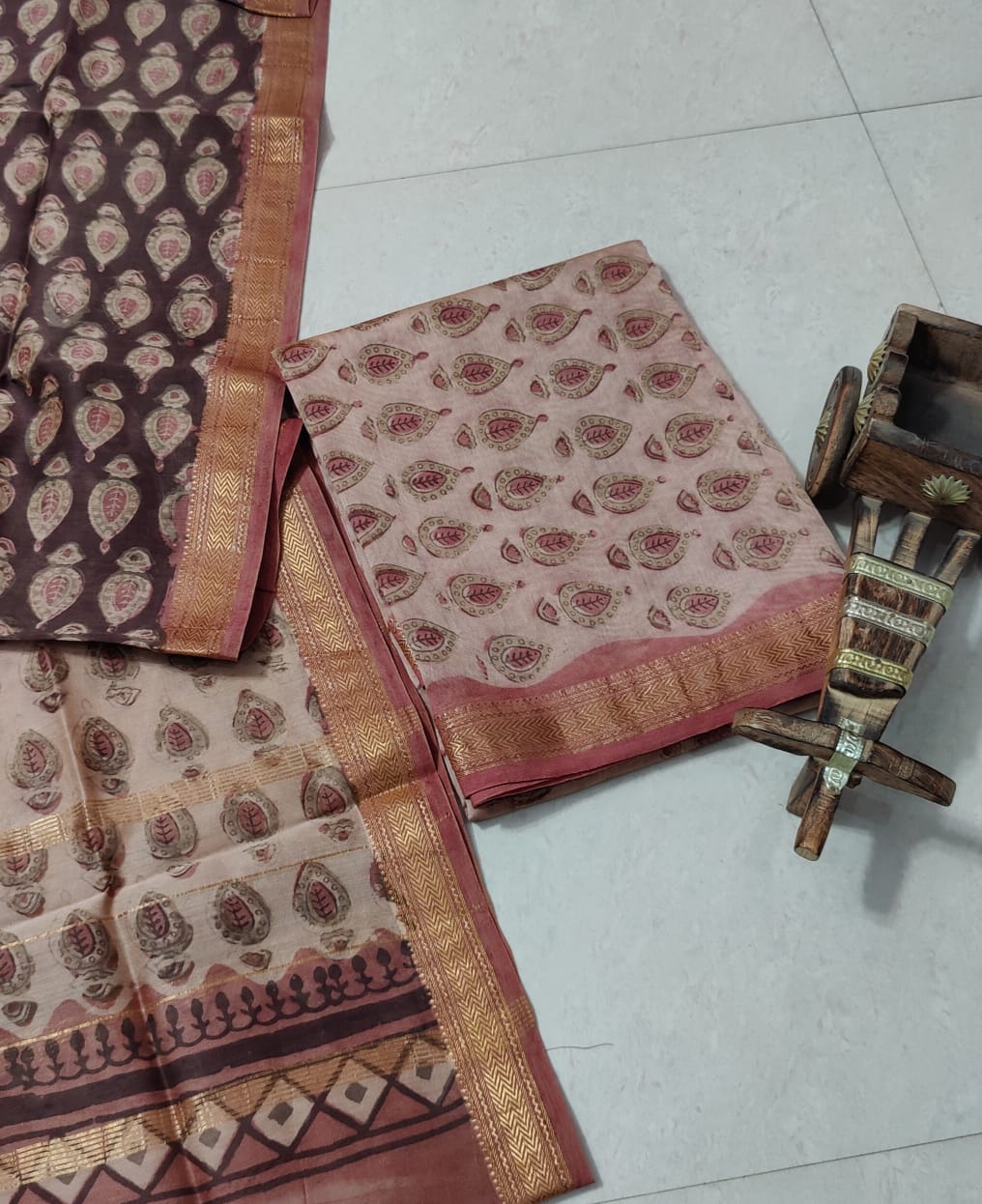 Jackyll Special handblock printed pure cotton suits with kota doriya dupatta.