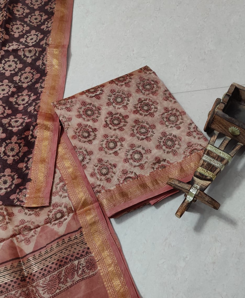 Maheshwari silk  suits with hand stitched shibori work and Ajrak  print