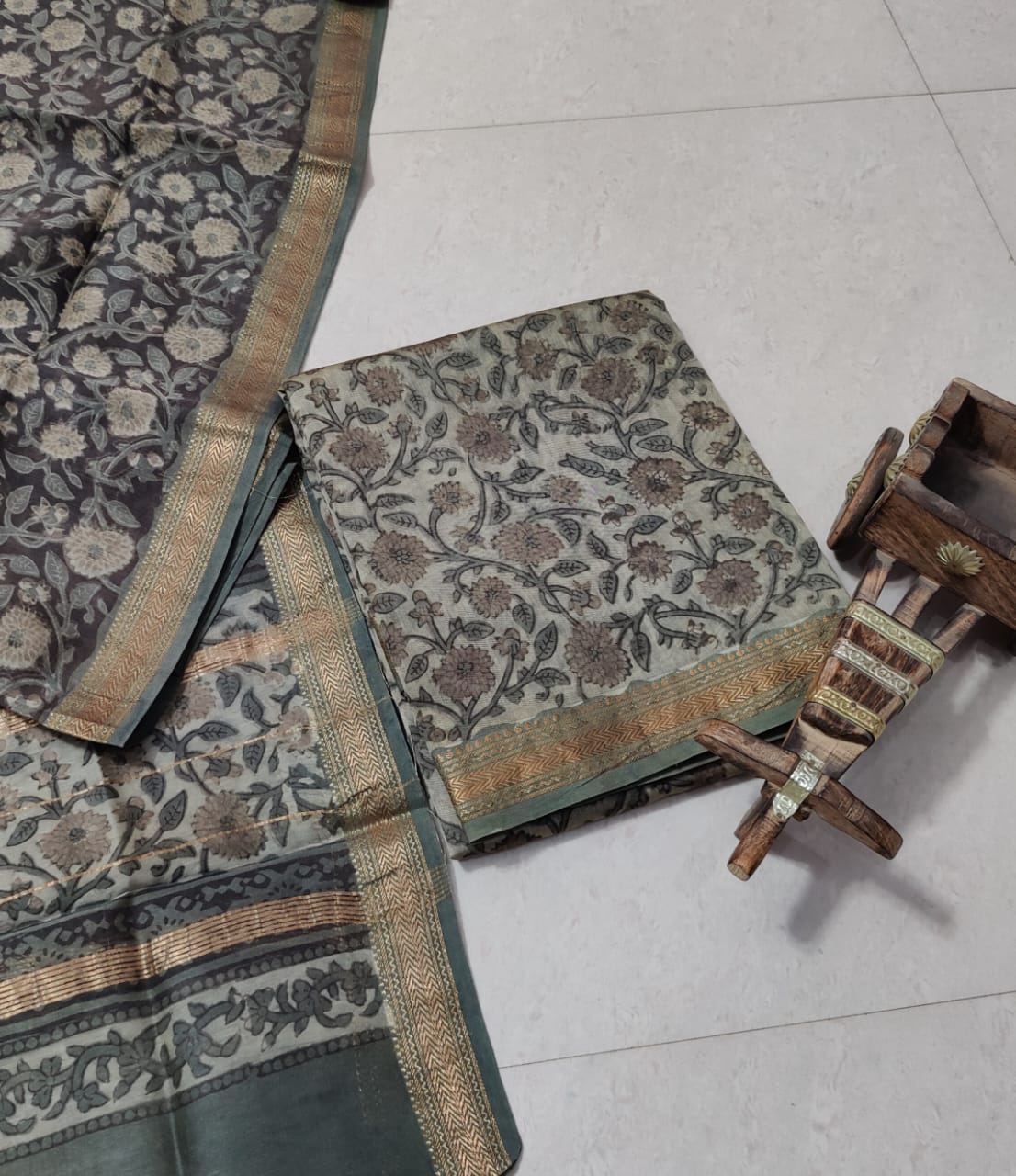 • Stiched hand block suits with kota dupattaStiched hand block suits with kota dupatta