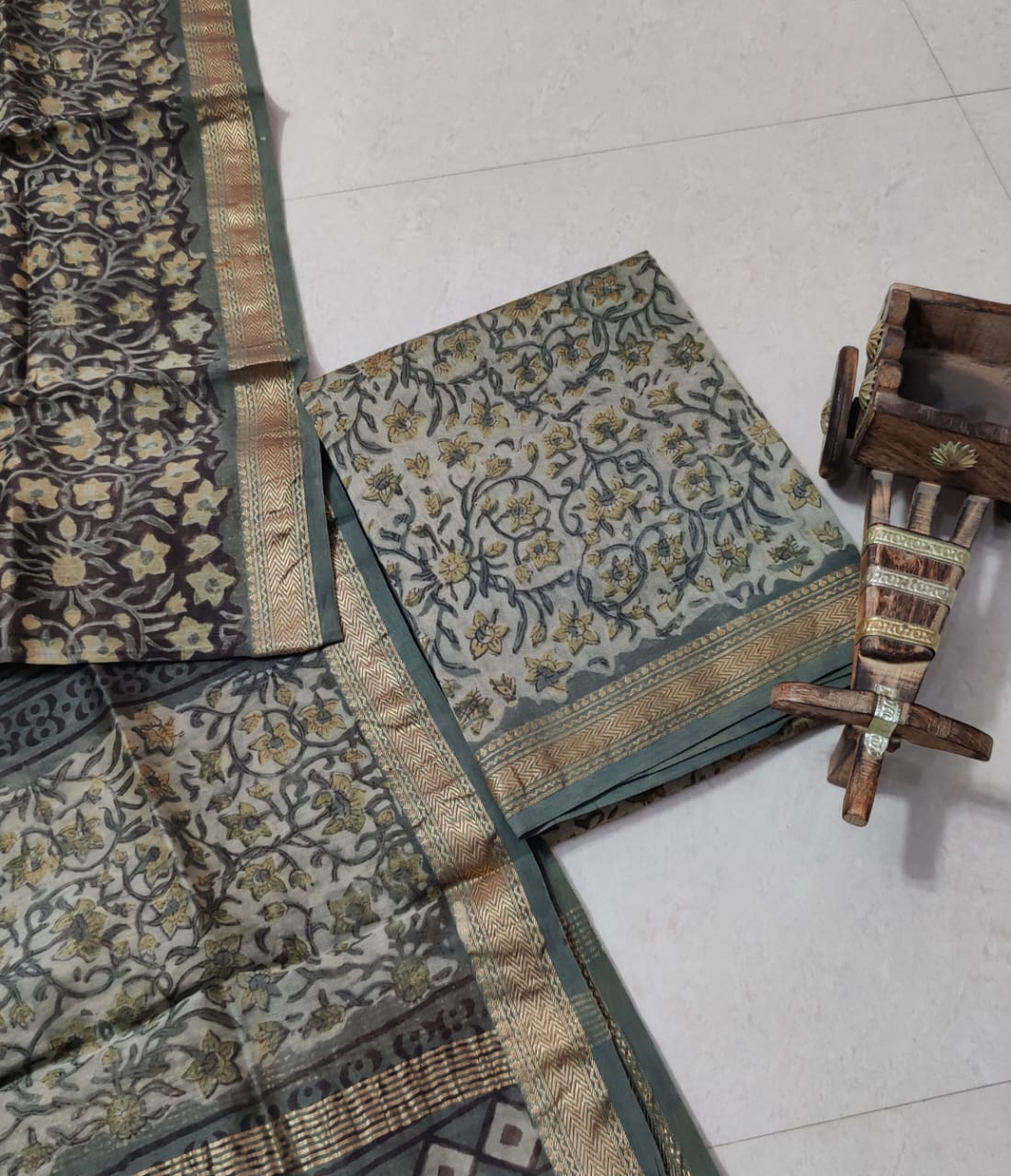 • Hand block Maheshwari silk suits