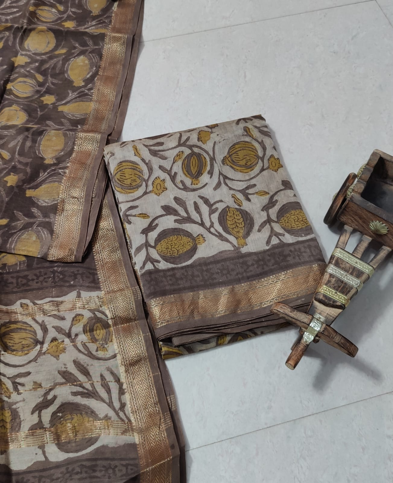 • Hand block Maheshwari silk suits