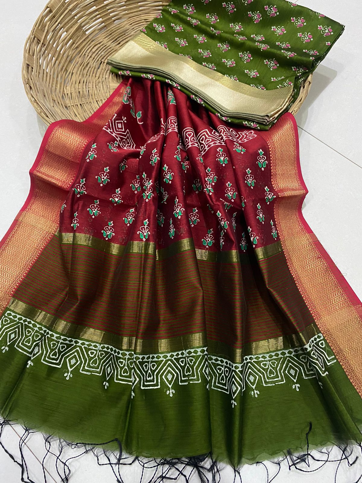 • Hand block Maheshwari silk suits