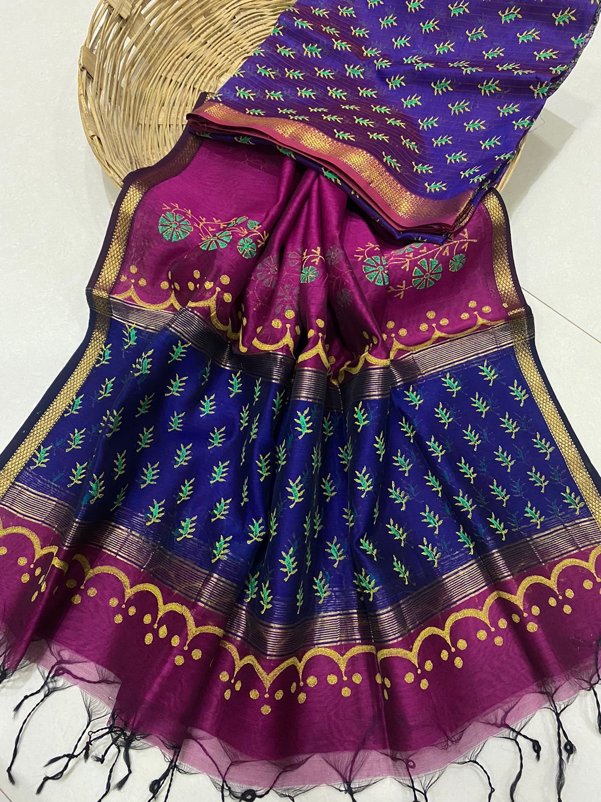 Allover hand block print maheswari dress Material with nakshi boder ..
