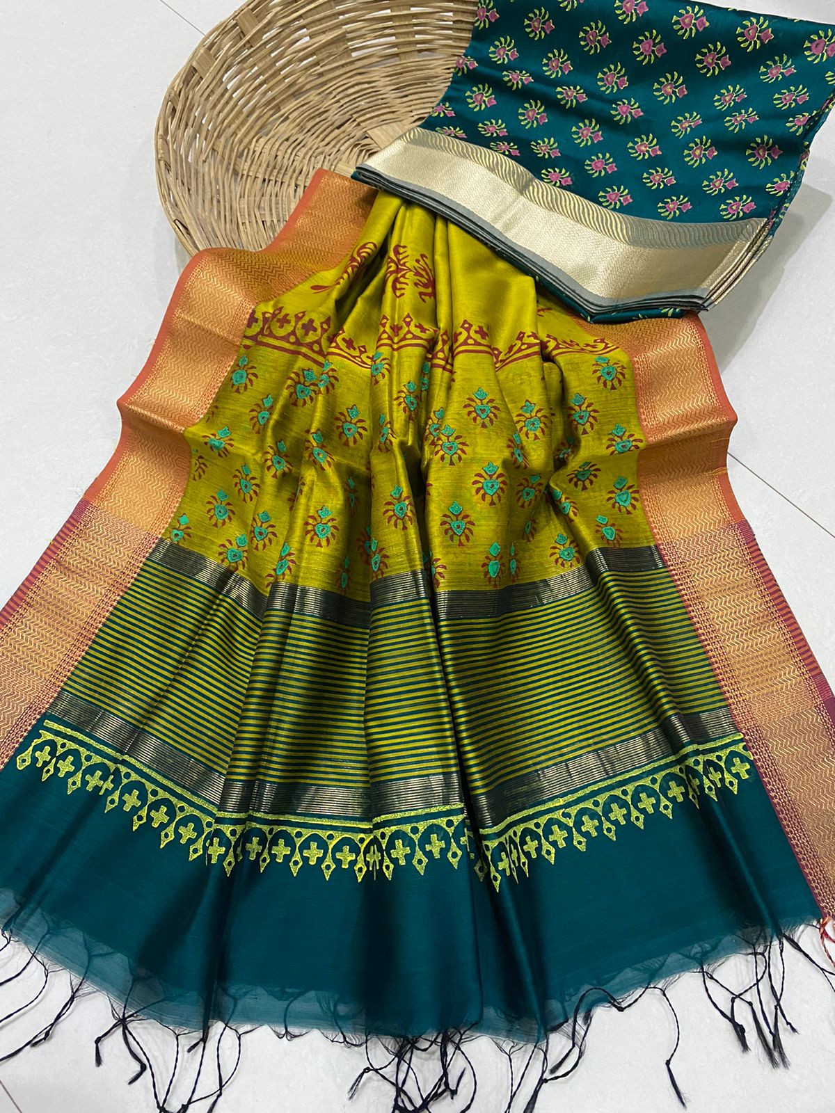 Allover hand block print maheswari dress Material with nakshi boder ..