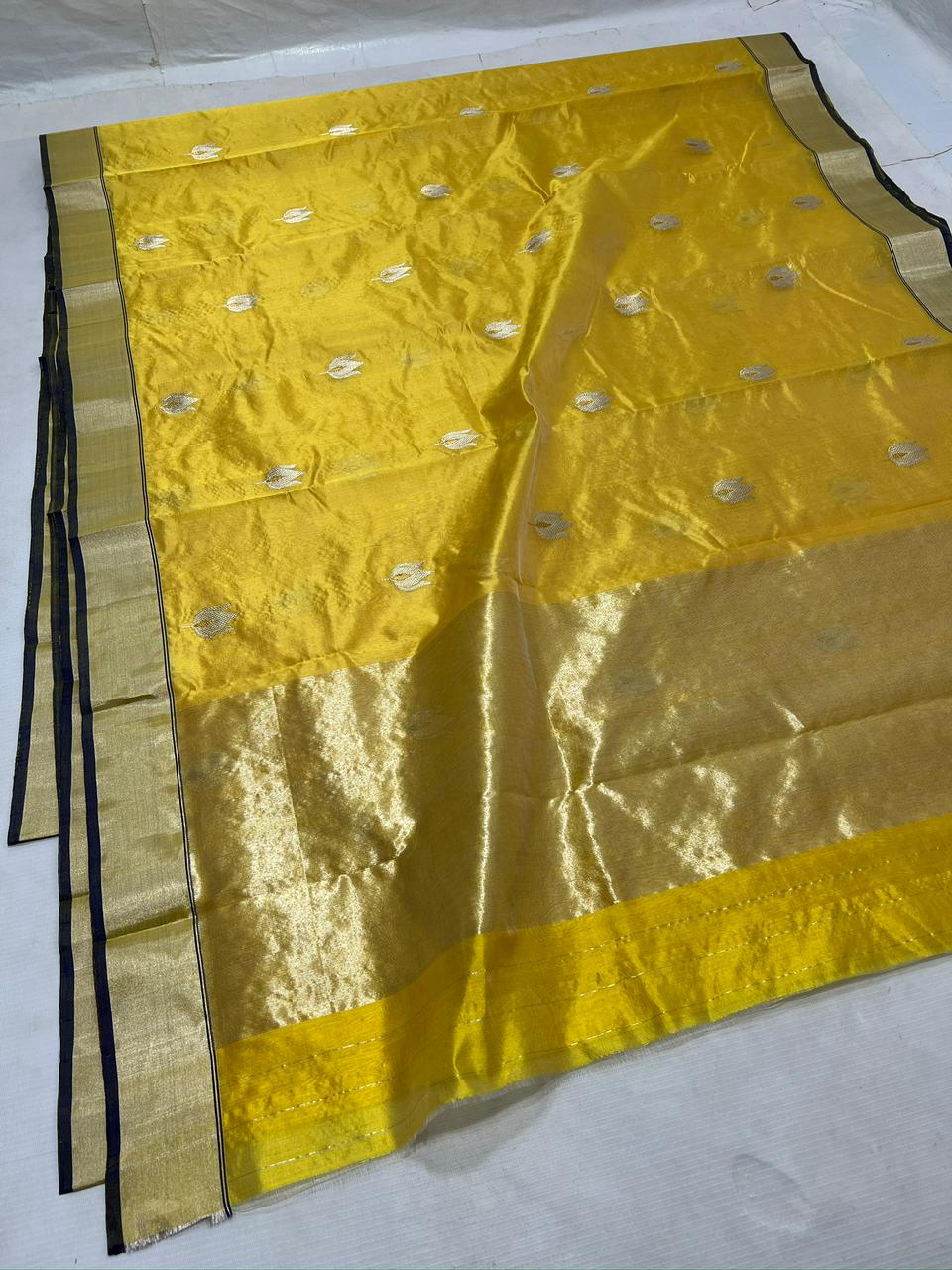 Allover eknaliya silver golden Zari handwoven minakari buta with silver Zari solid