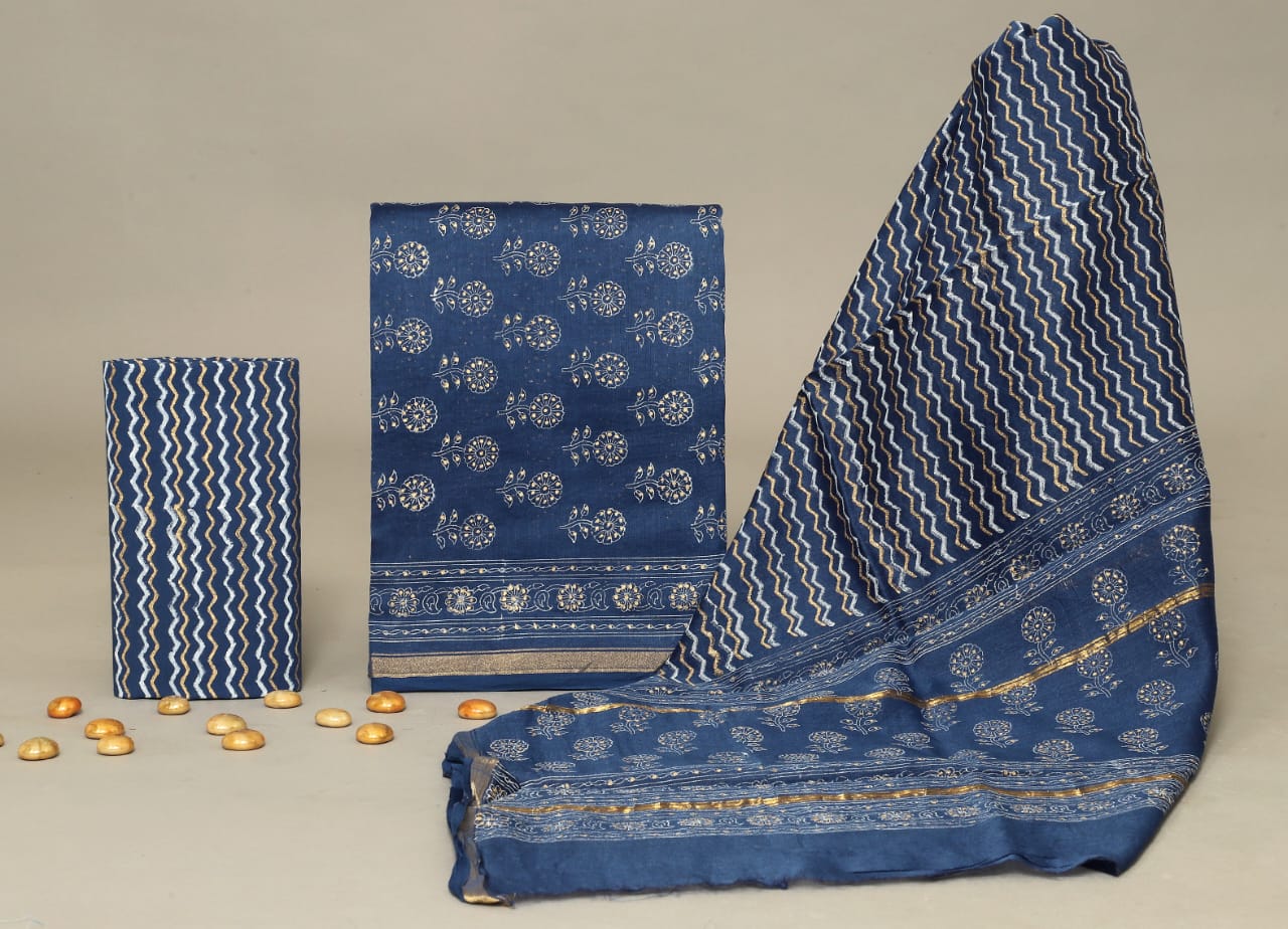Be the first to review “New exclusive hand Designer block printed pure chanderi suit sets with cotton bottom” Cancel reply
