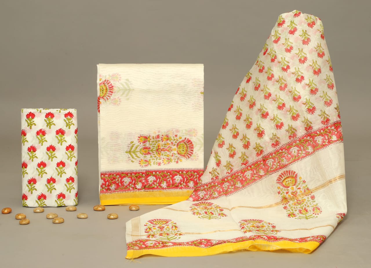 New exclusive hand Designer block printed pure chanderi suit sets with cotton bottom