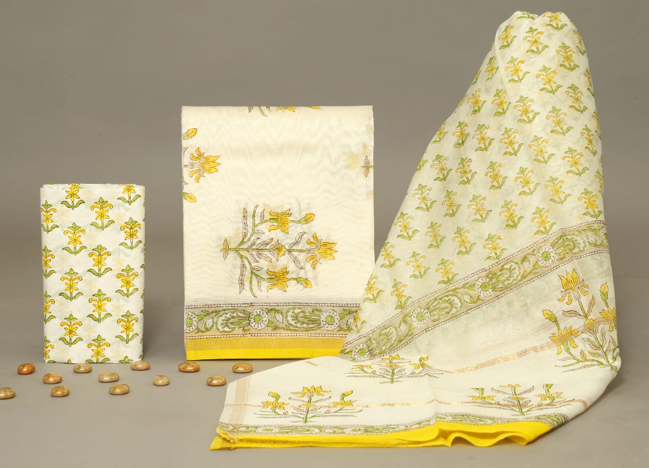 Jackyll Special handblock printed pure cotton suits with kota doriya dupatta.