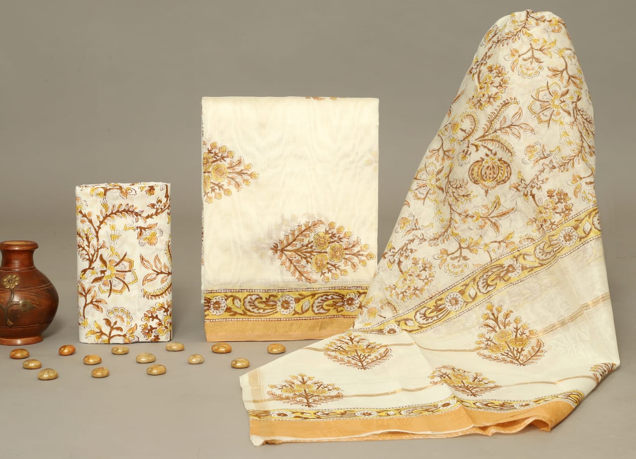 New exclusive hand Designer block printed pure chanderi suit sets with cotton bottom