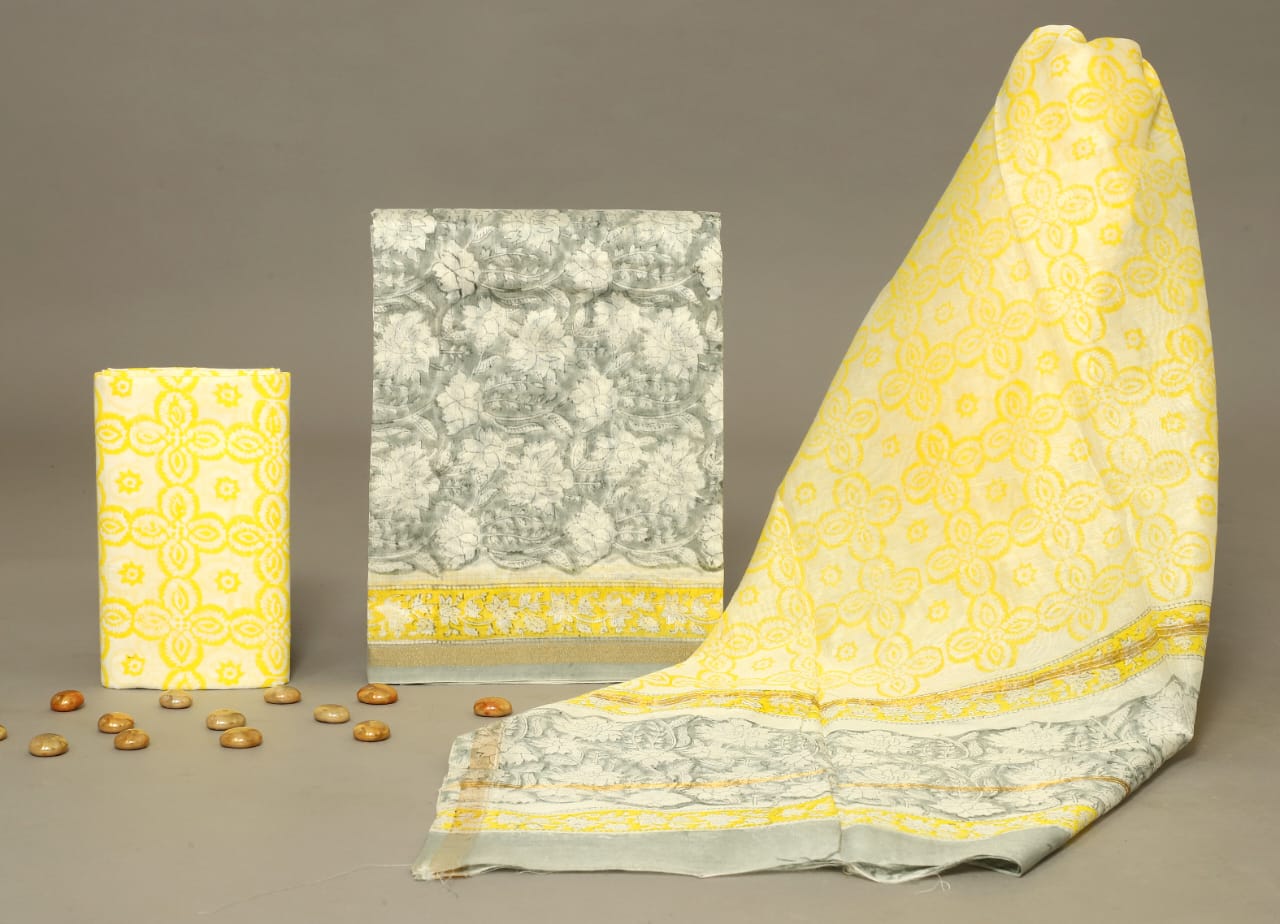 Jackyll Special handblock printed pure cotton suits with kota doriya dupatta.