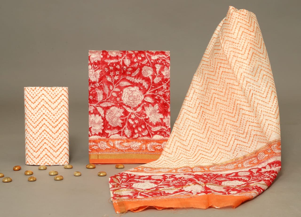 New exclusive hand Designer block printed pure chanderi suit sets with cotton bottom