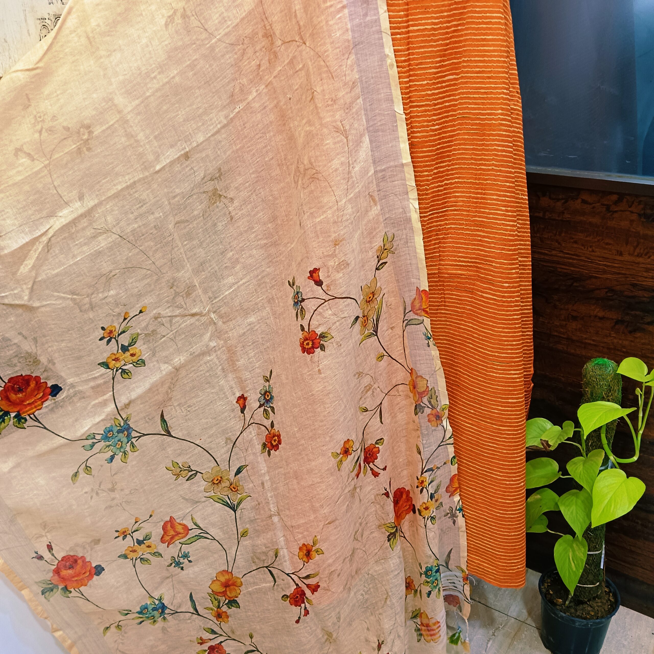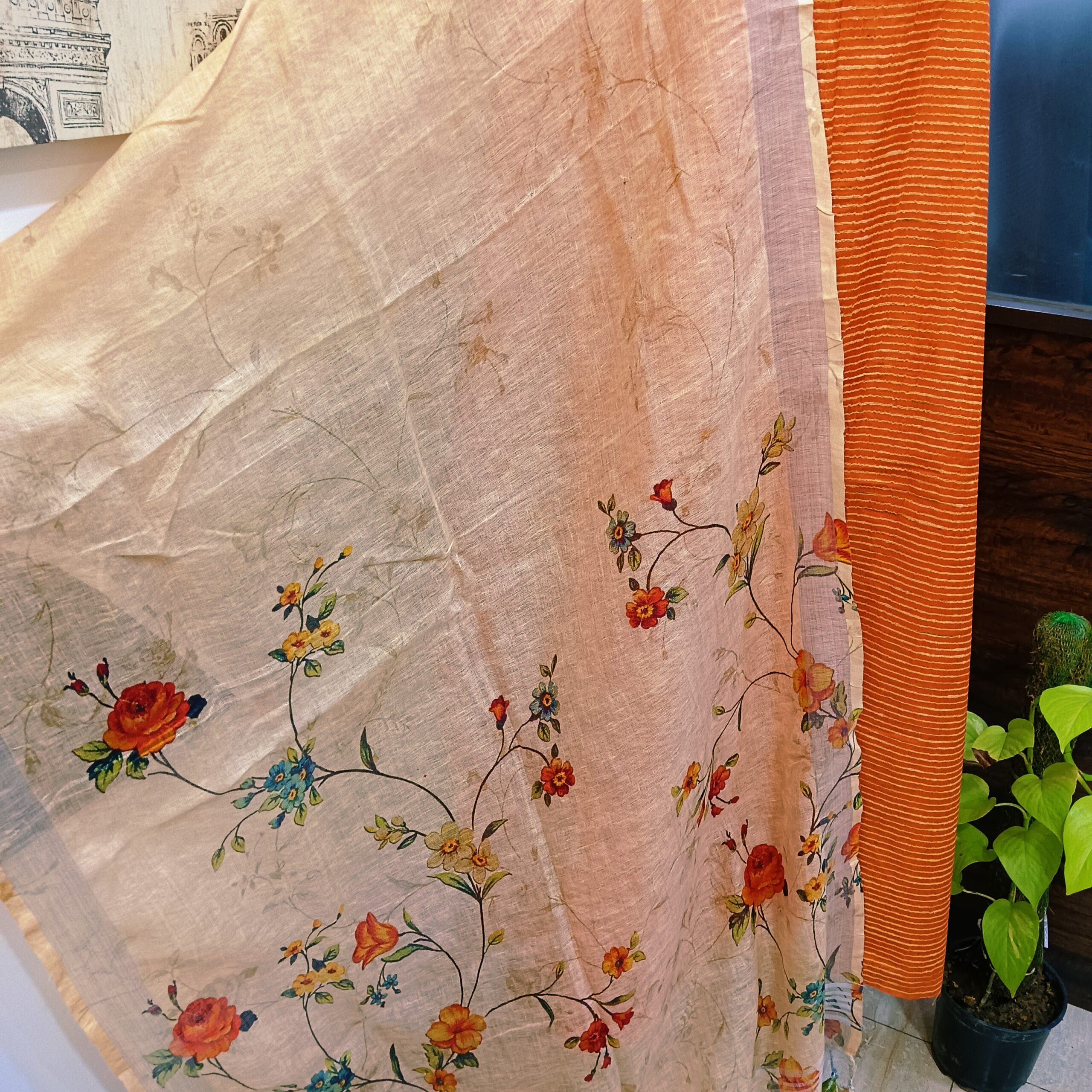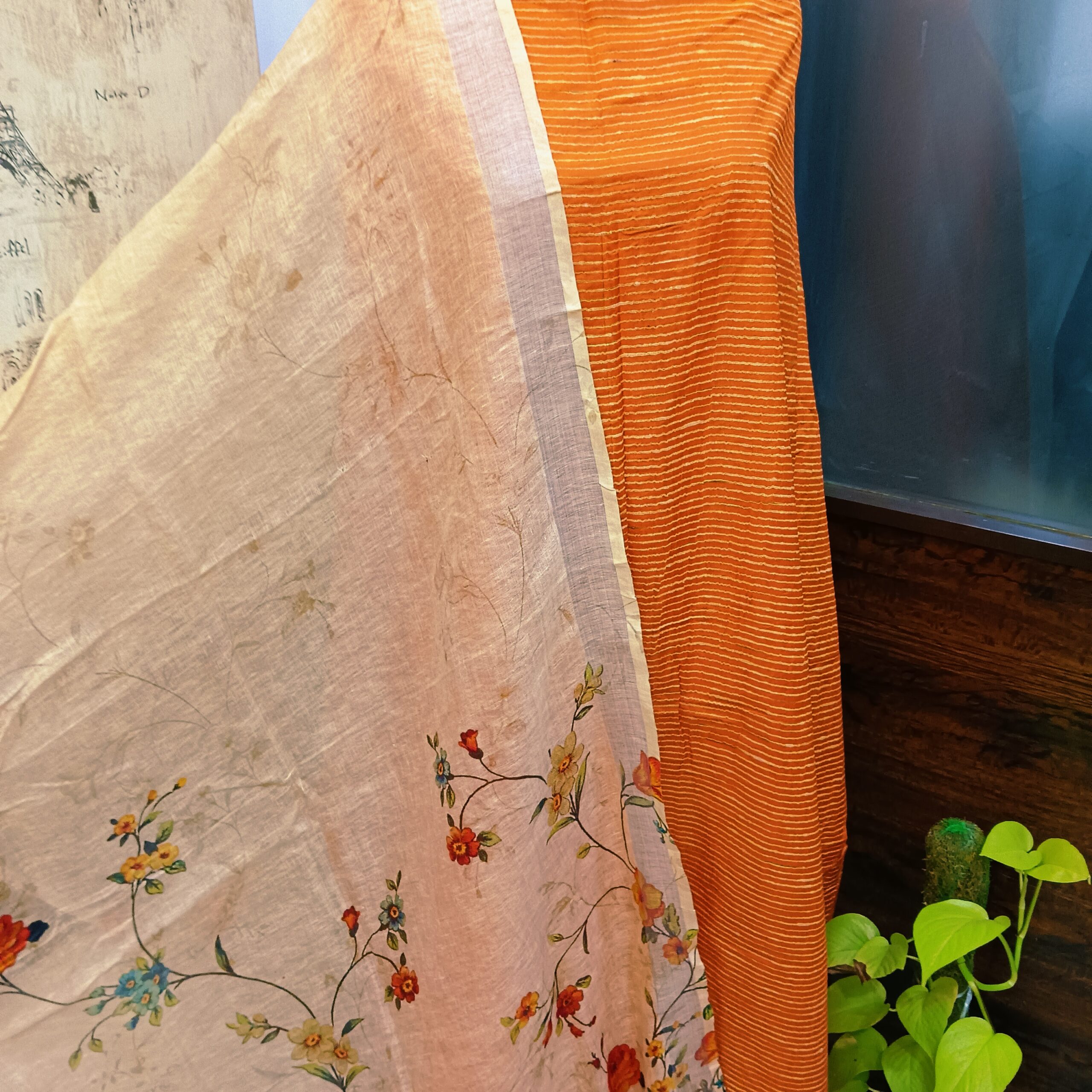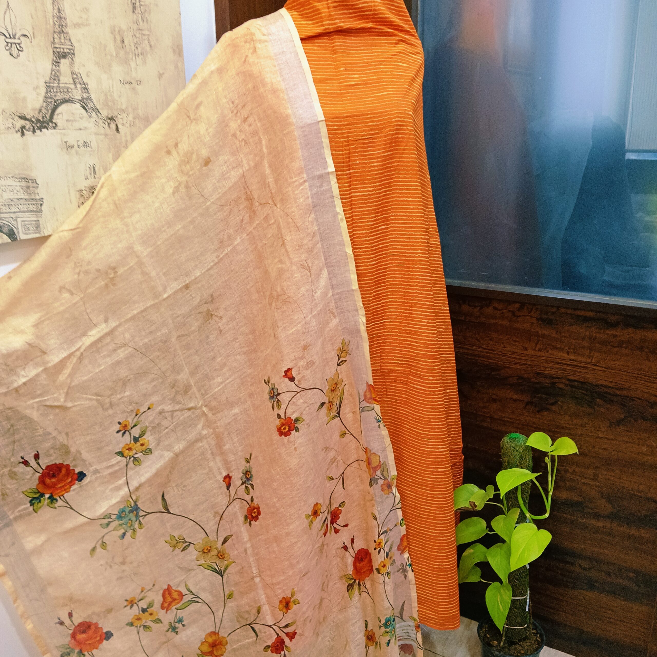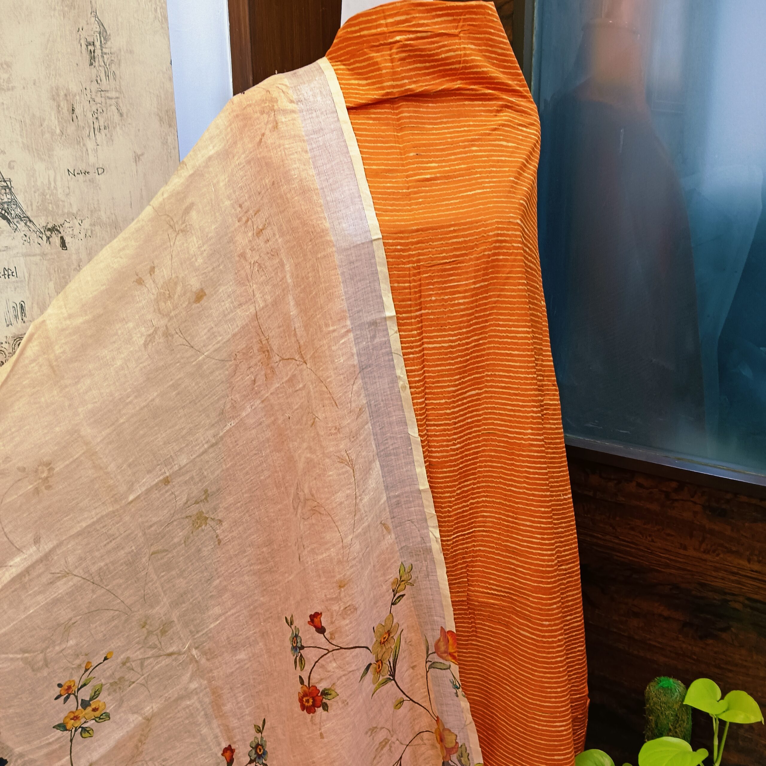 Organic cotton handloom shirt paired with pure linen digital print dupatta