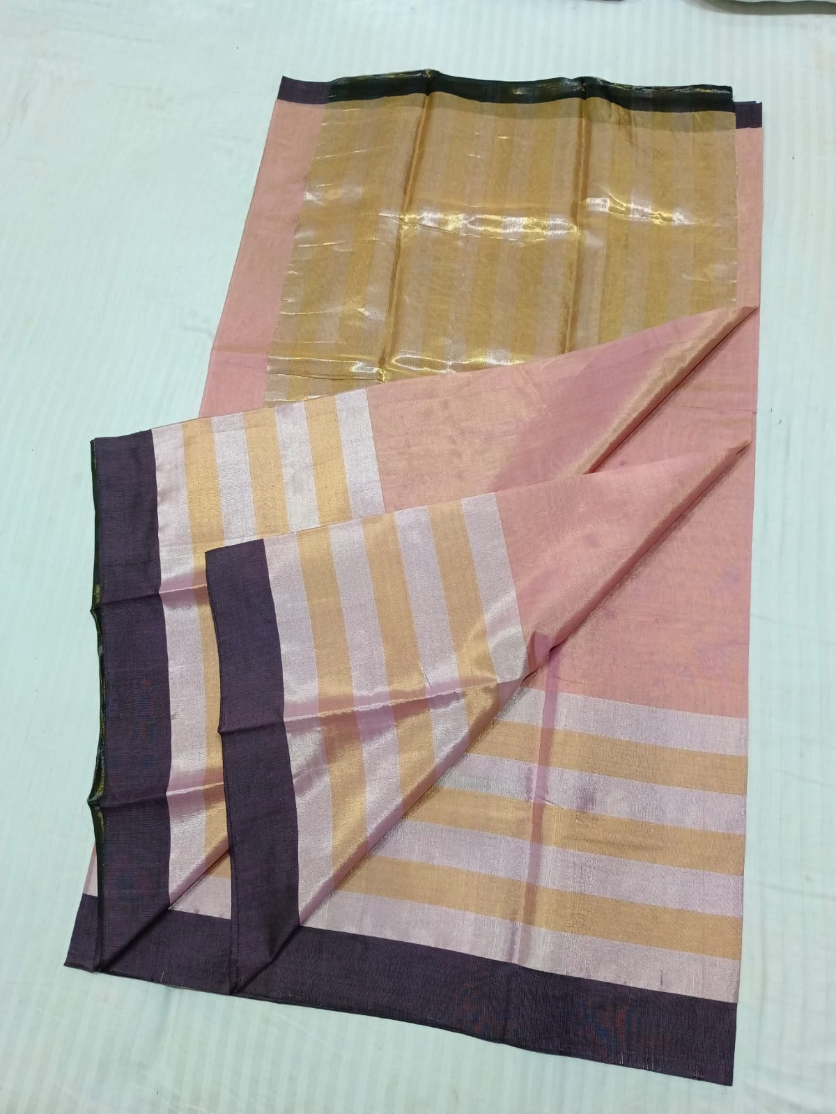 Pink color with silver Golden Stripe Chanderi Silk Saree