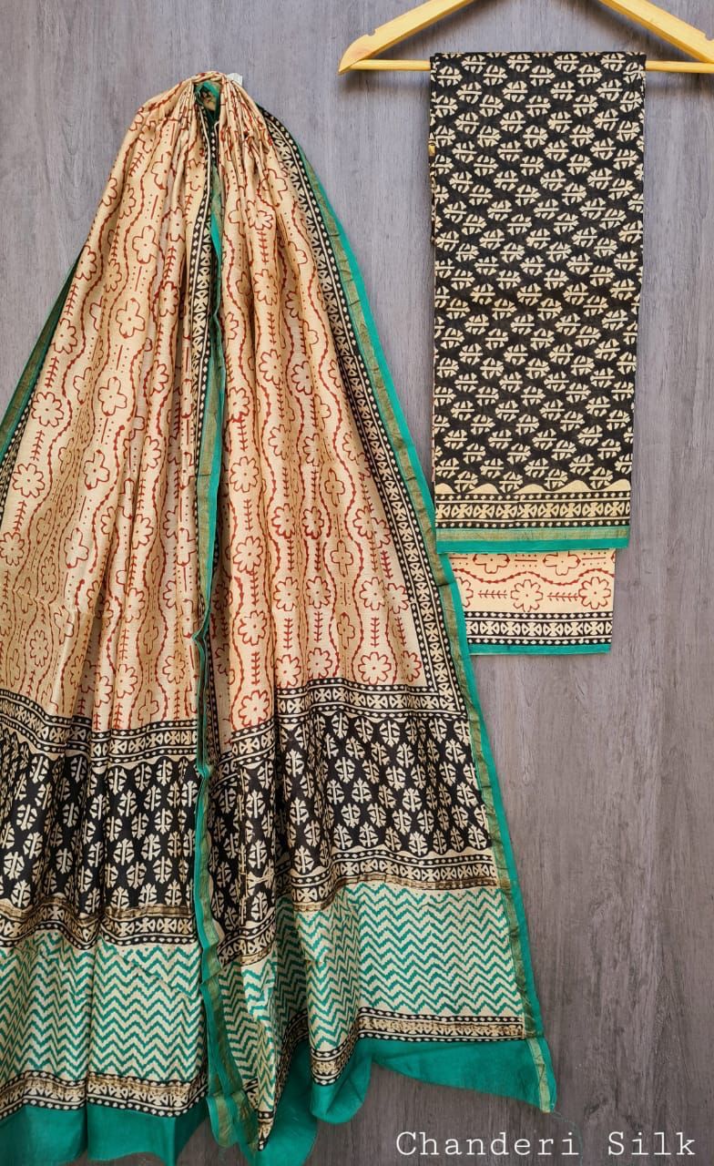 Pure Chanderi Hand Block suits With Chanderi Dupatta,cotton bottoms