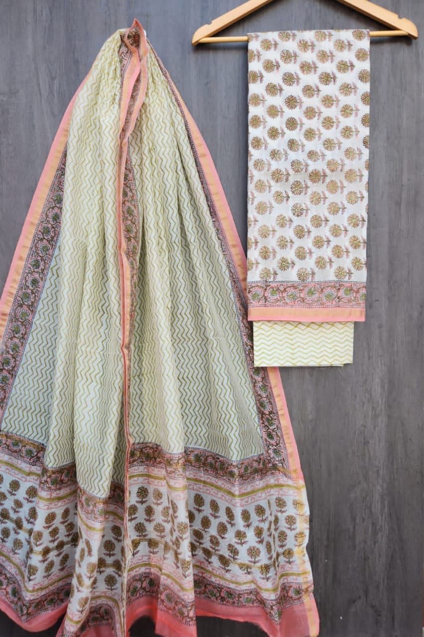 Pure pure cotton hand block printed suits with chanderi dupatta
