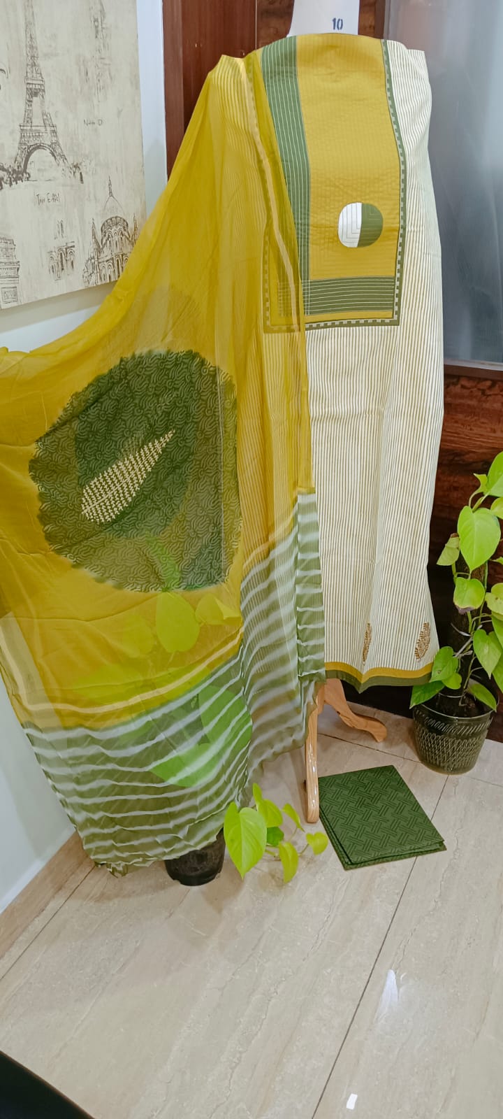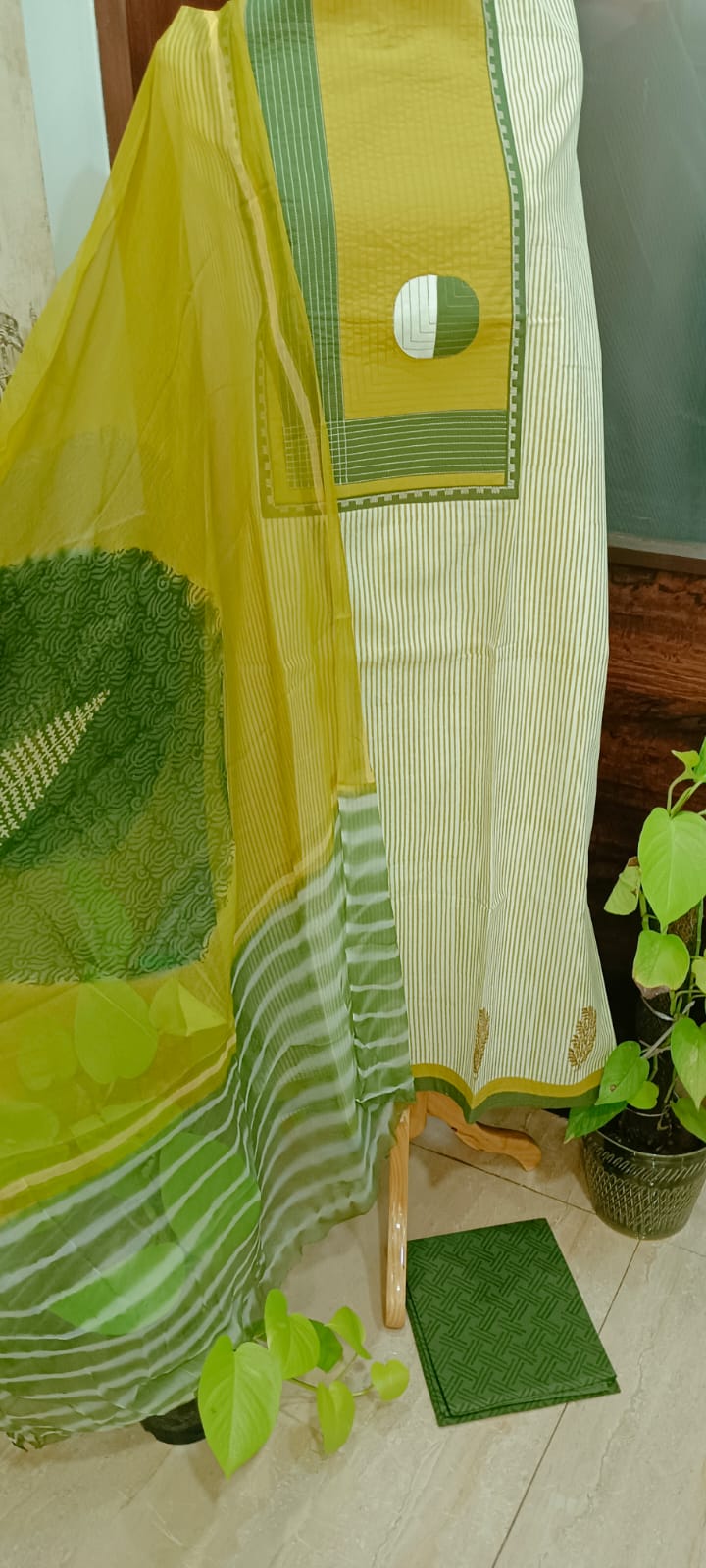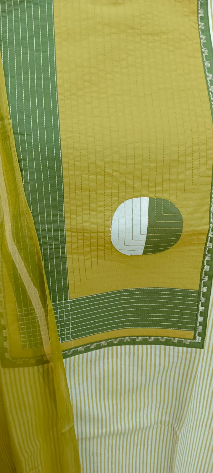 A beautiful pure cotton suits with a patch neck in exclusive kantha stitch accompanied with a pure chiffon dupatta