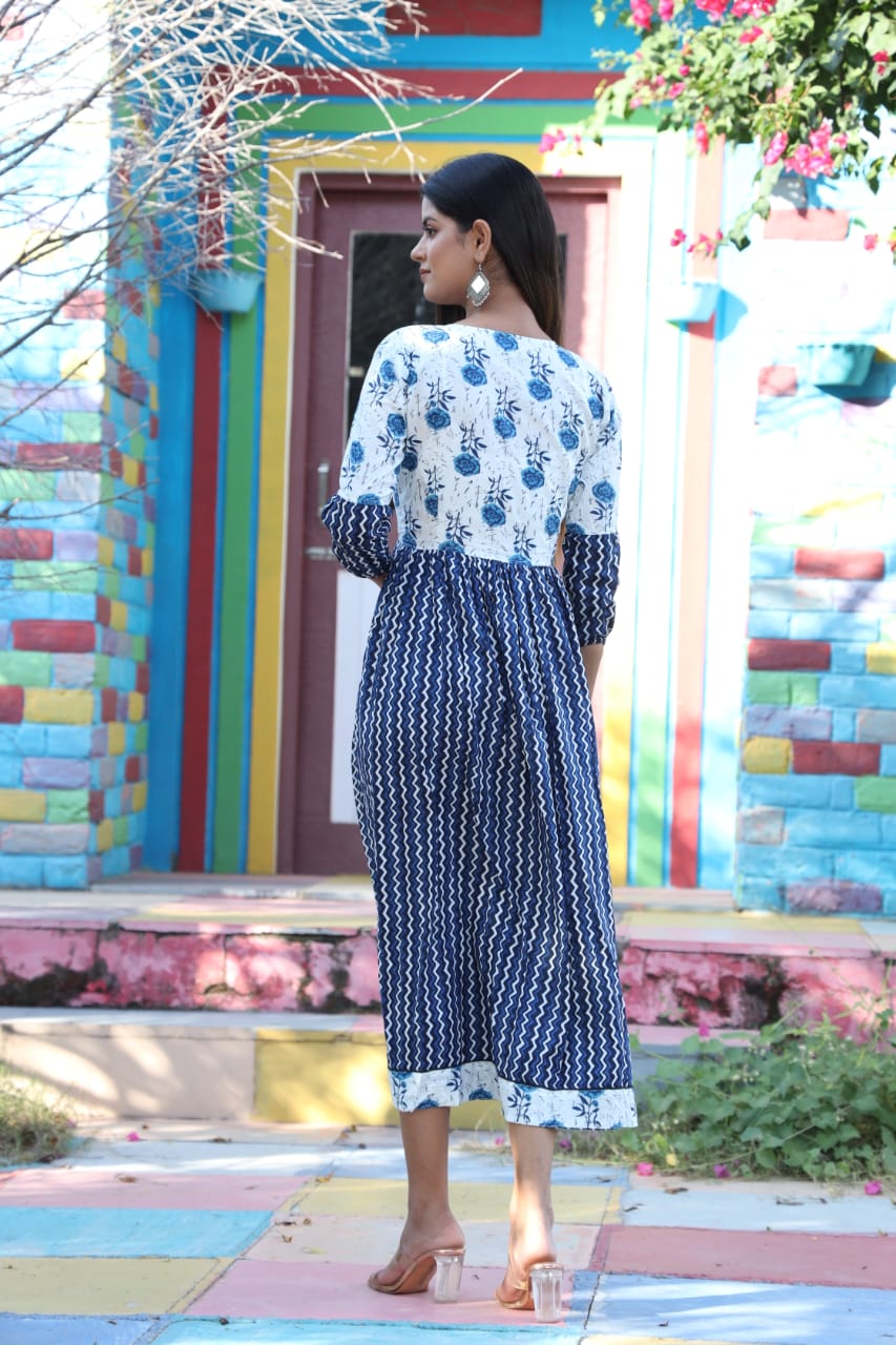 Pure Cotton Hand Block Printed fit and flair long dress