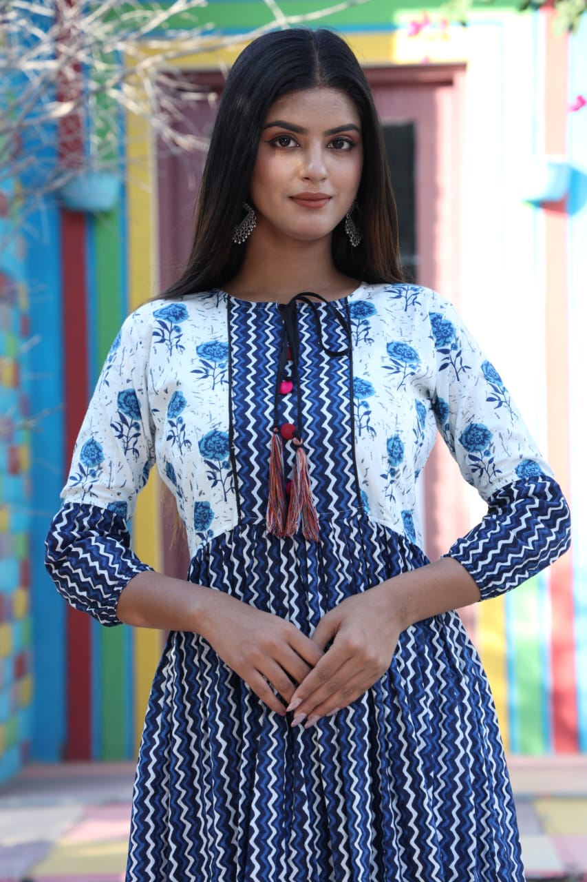 Pure Cotton Hand Block Printed fit and flair long dress ₹ 2579.14 Original price was: ₹ 2579.14.₹ 1719.14Current price is: ₹ 1719.14.